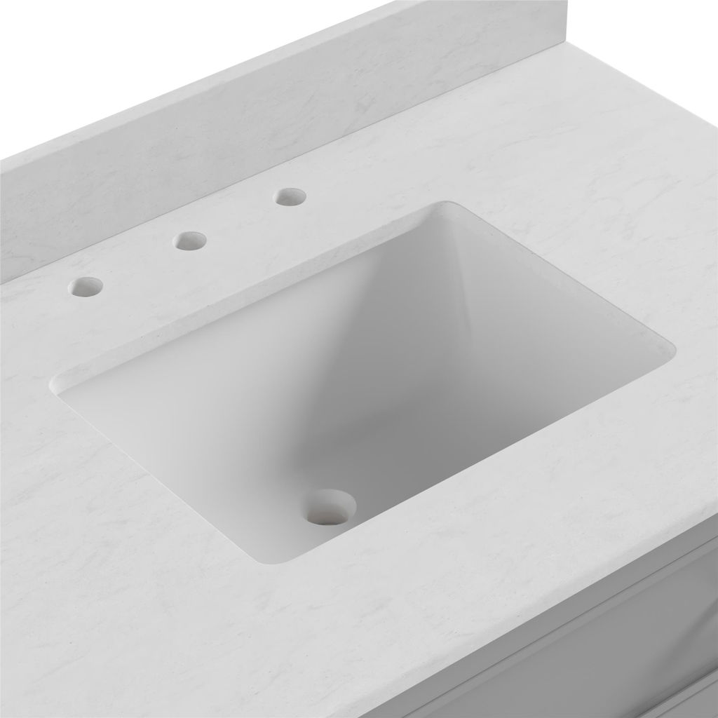 Constructed with a sleek built-in rectangular ceramic sink, its modern composite Carrera engineered stone countertop will leave you in awe while the countertop's inherent non-porous, easy clean and scratch-resistant properties will simultaneously make day-to-day life easier.