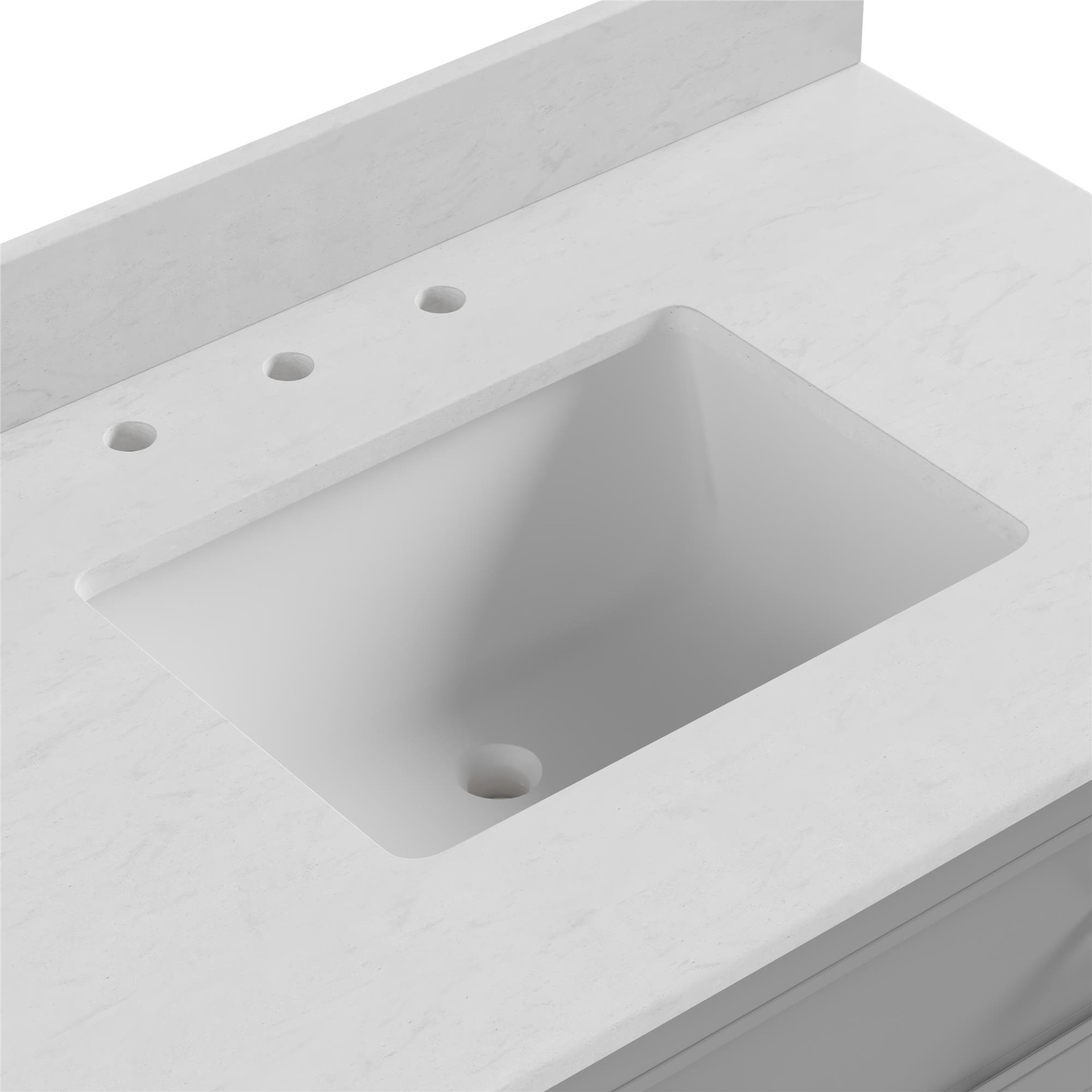 Pre-drilled holes also allow for the easy installation of an 8" widespread faucet (not included).