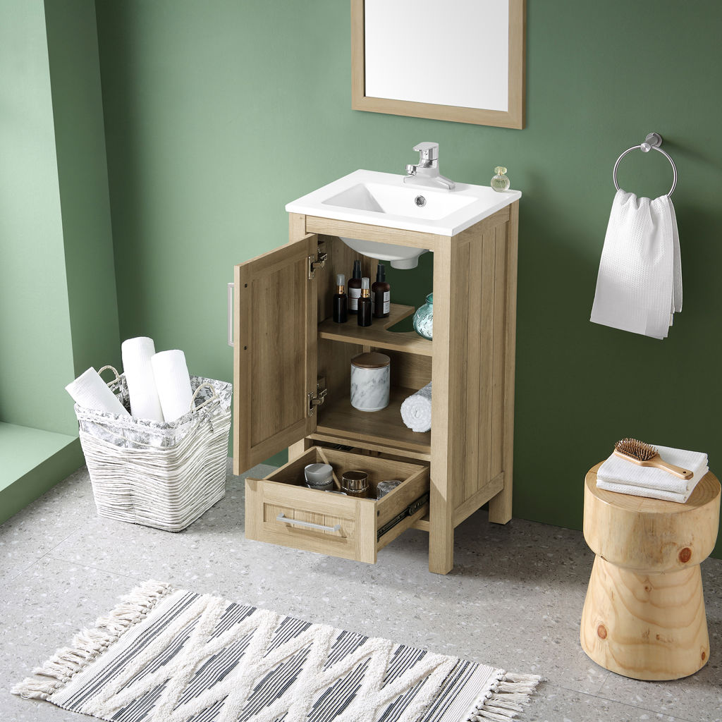 Whether for a powder room or a family bathroom, the Kansas Vanity by OVE brings a charming beach cottage vibe to your home.