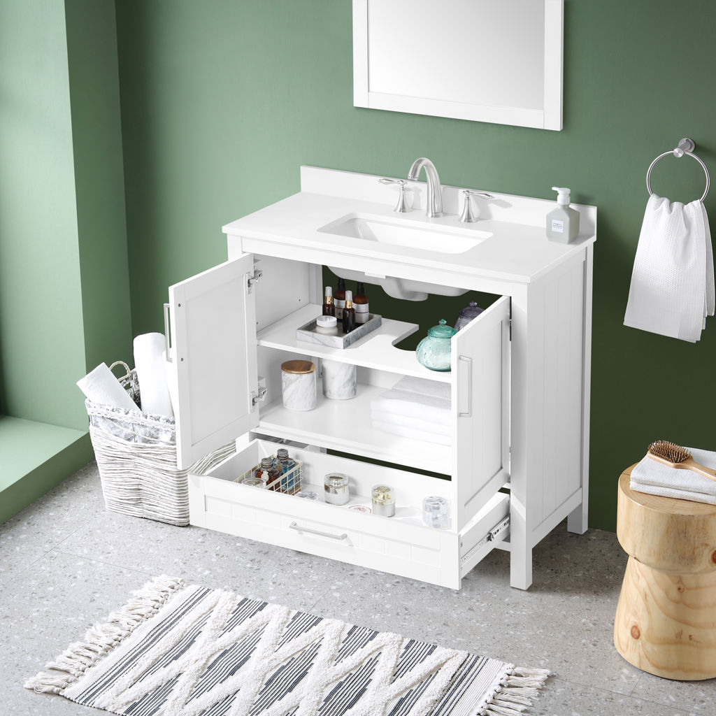 Available in a range of colors and sizes, the Kansas vanity blends function and style with its elegant tongue-and-groove paneling, designed to last for years to come.