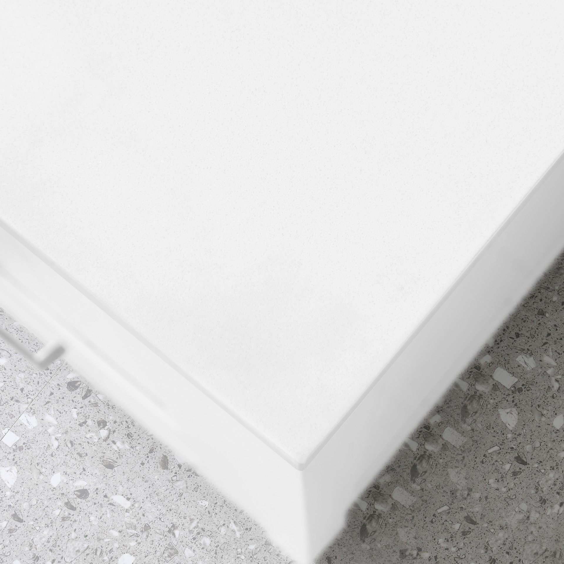 Its one-piece ceramic countertop with integrated sink maximizes the use of its compact surface.