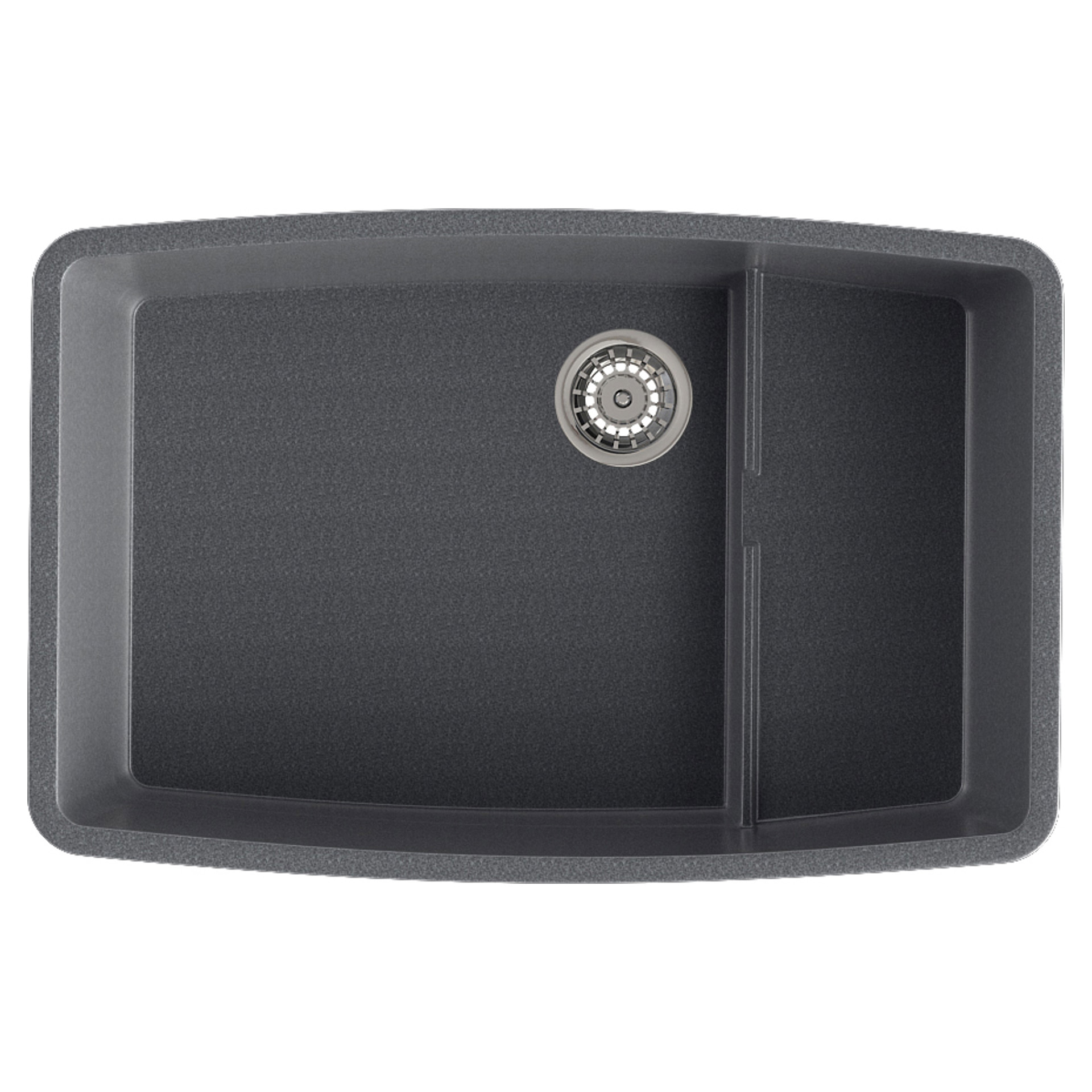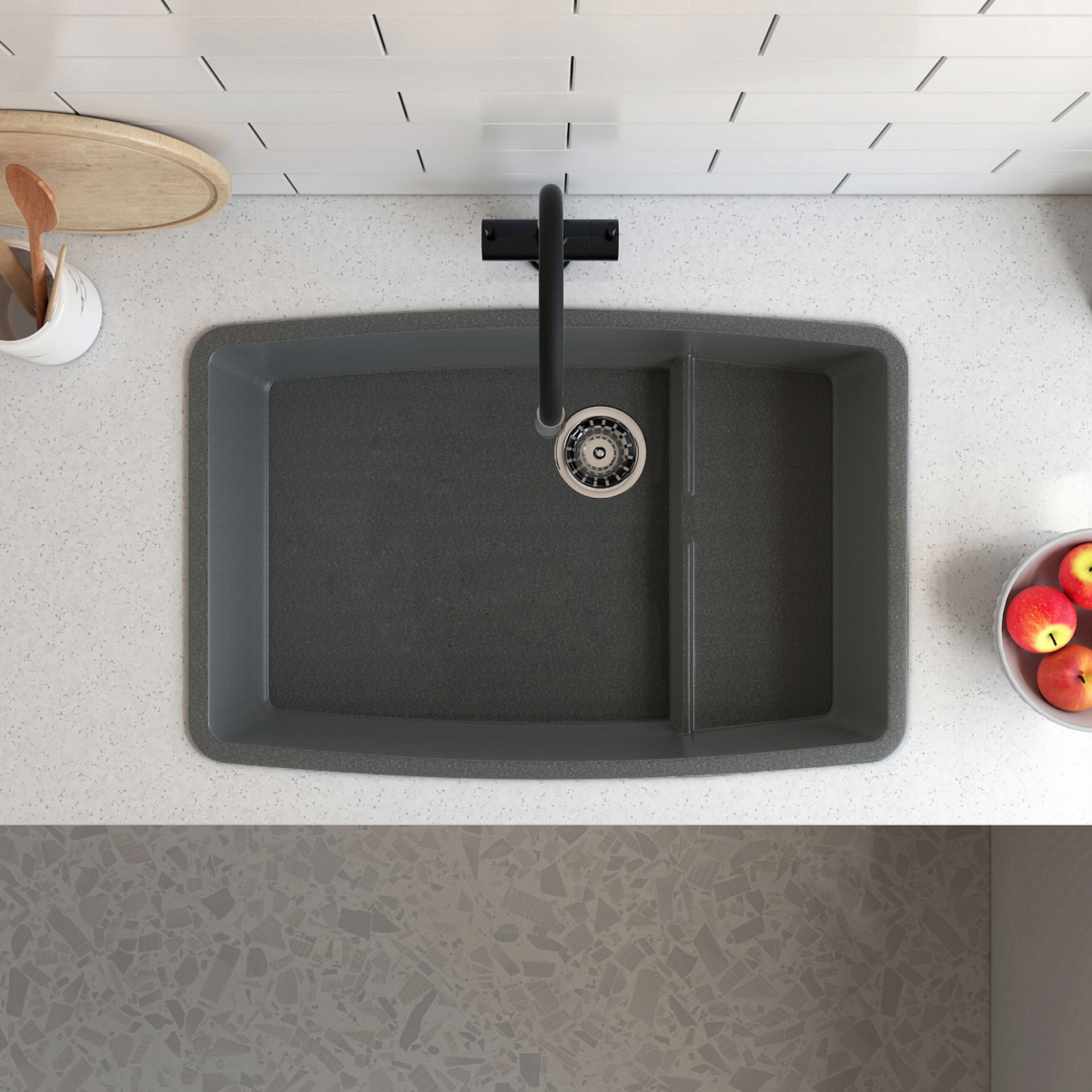 Clean and timeless, the 30 in. granite double bowl sink in grey brightens up smaller kitchens with its crisp, fresh appearance.