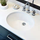 This oval undermount sink offers a clean, modern look to your bathroom. Made entirely of ceramic with a high-gloss white finish. Stain and scratch resistant.