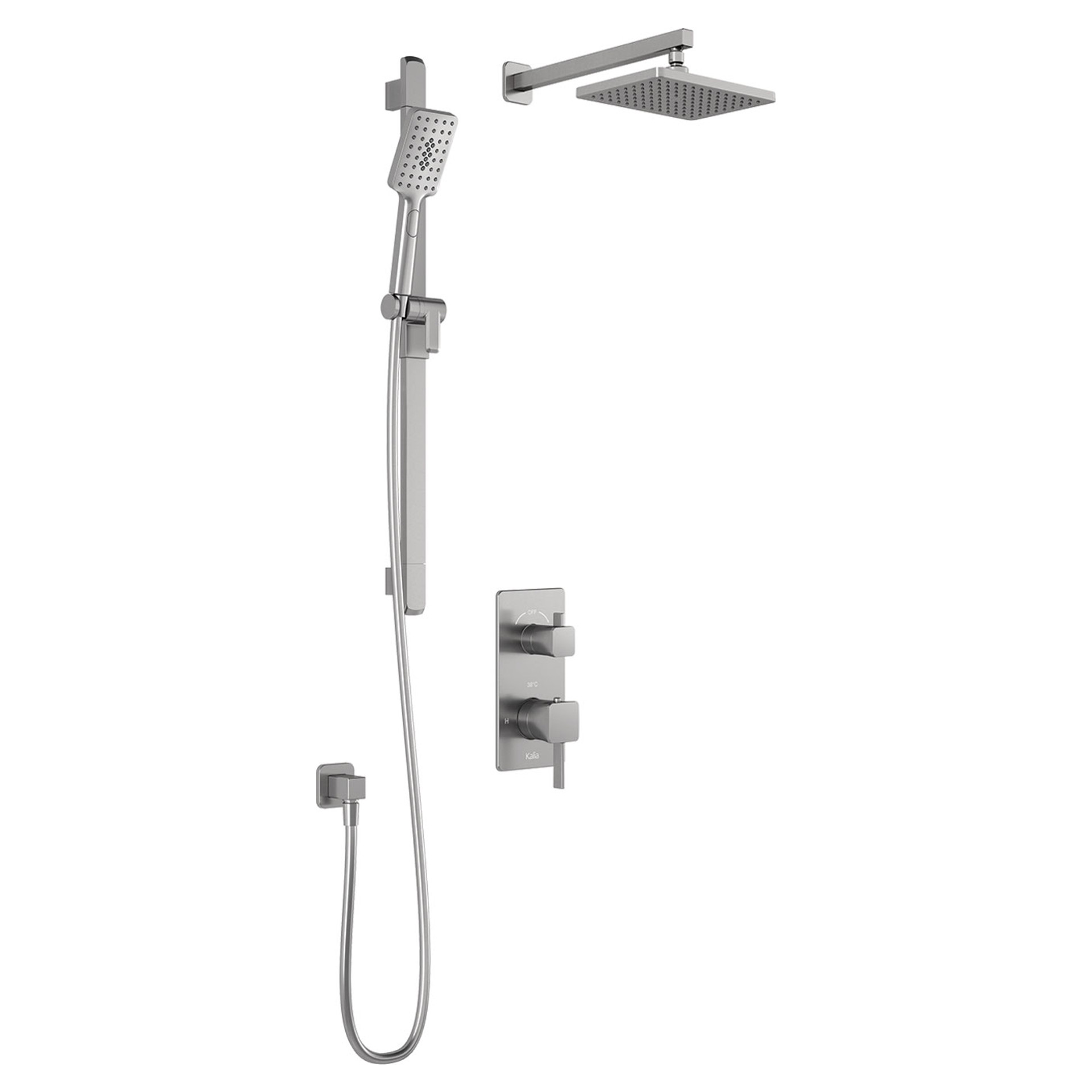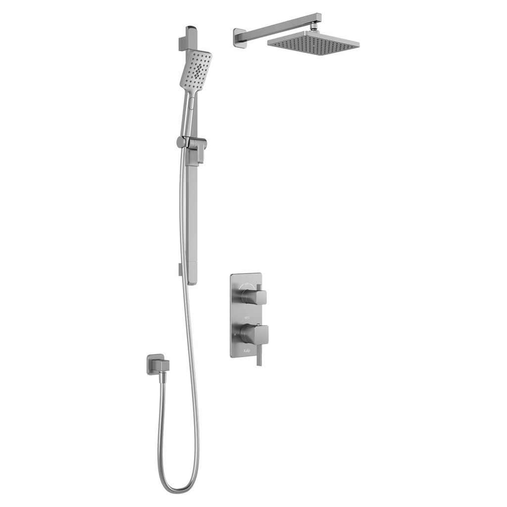SquareOne Thermostatic Shower System with T/P AQUATONIK Valve with 2-way Selector and Wall Arm - Pure nickel PVS Kalia BF1650-125