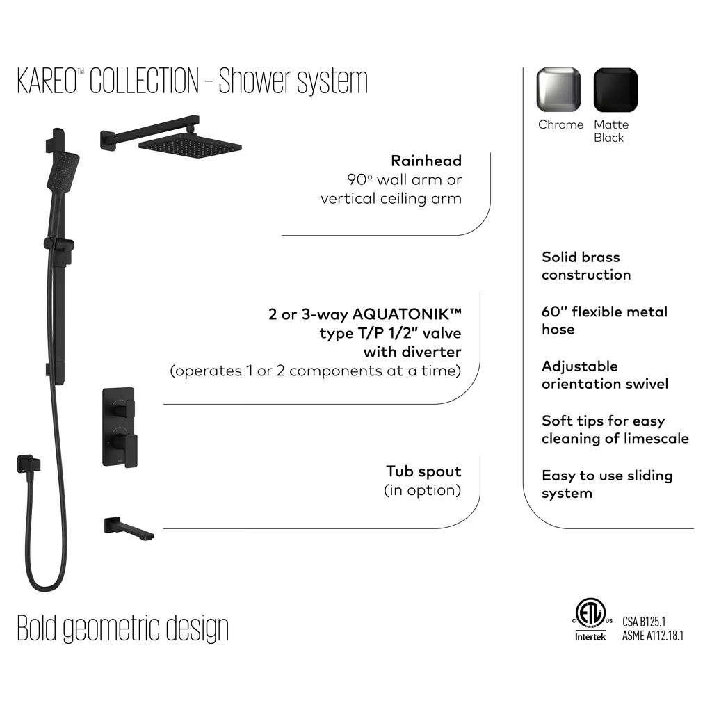 Kareo Thermostatic Shower System with 2-way Selector Switch and Vertical Arm - Chrome Kalia BF1981-110-001