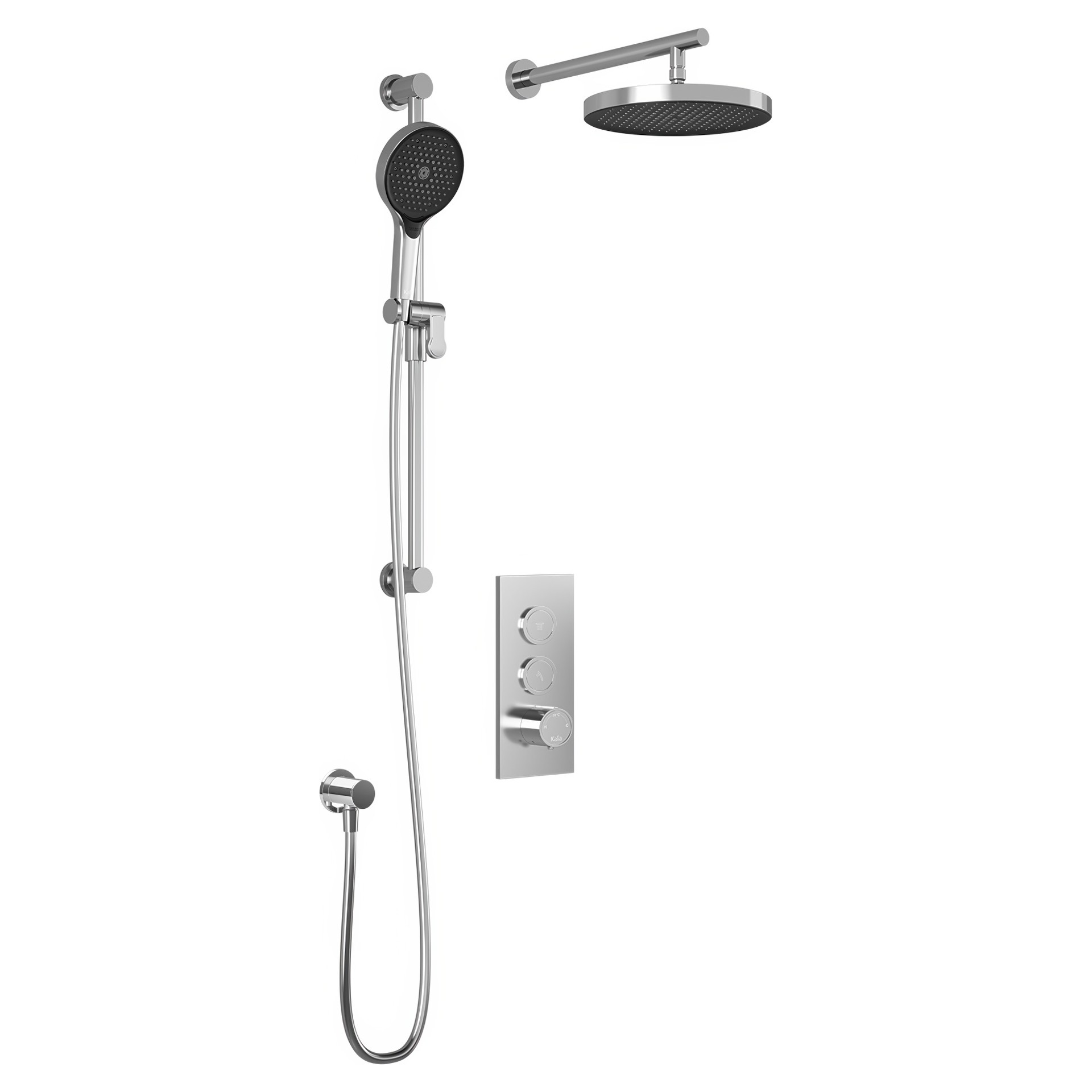 Featuring a temperature control knob and recessed push-buttons, you can easily use 2 or 3 components simultaneously for a personalized shower experience. The European push-button mechanism offers a quality tactile experience that's extremely pleasant and comfortable to use.