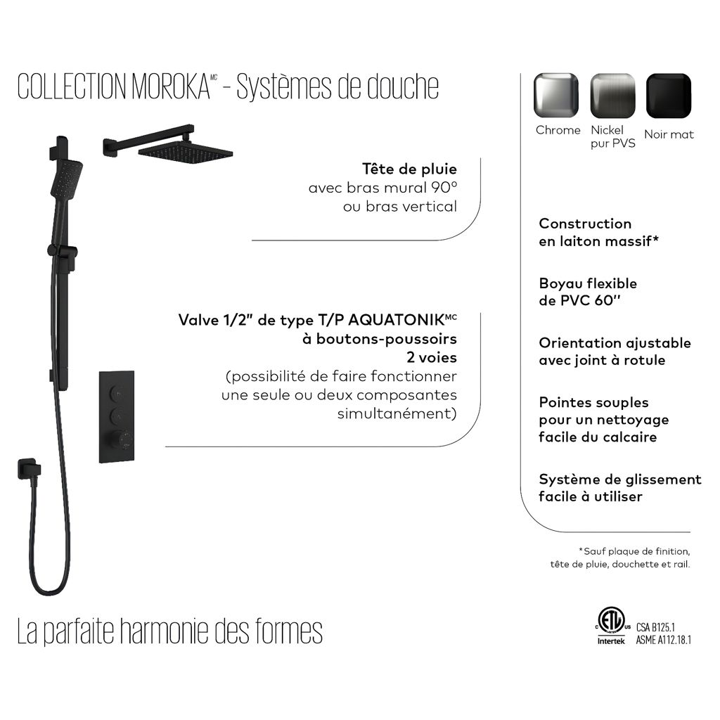 Moroka TB2 T/P Aquatonik Shower System with Pushbuttons and Wall Arm - Pure Nickel