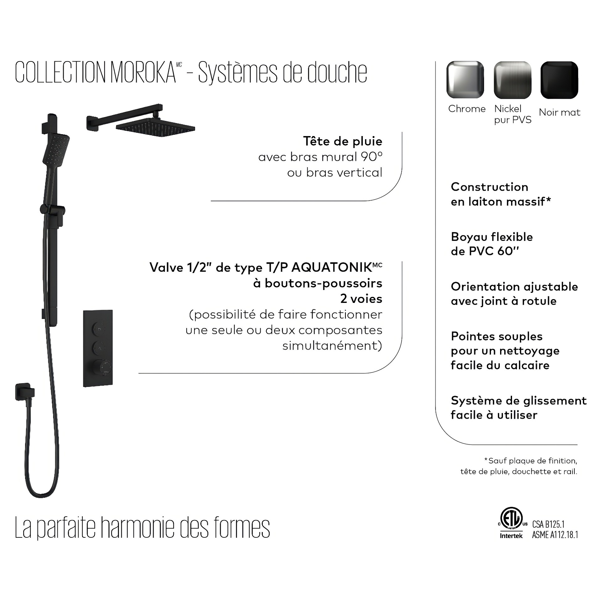 Moroka TB2 T/P Aquatonik Shower System with Pushbuttons and Vertical Arm - Pure Nickel