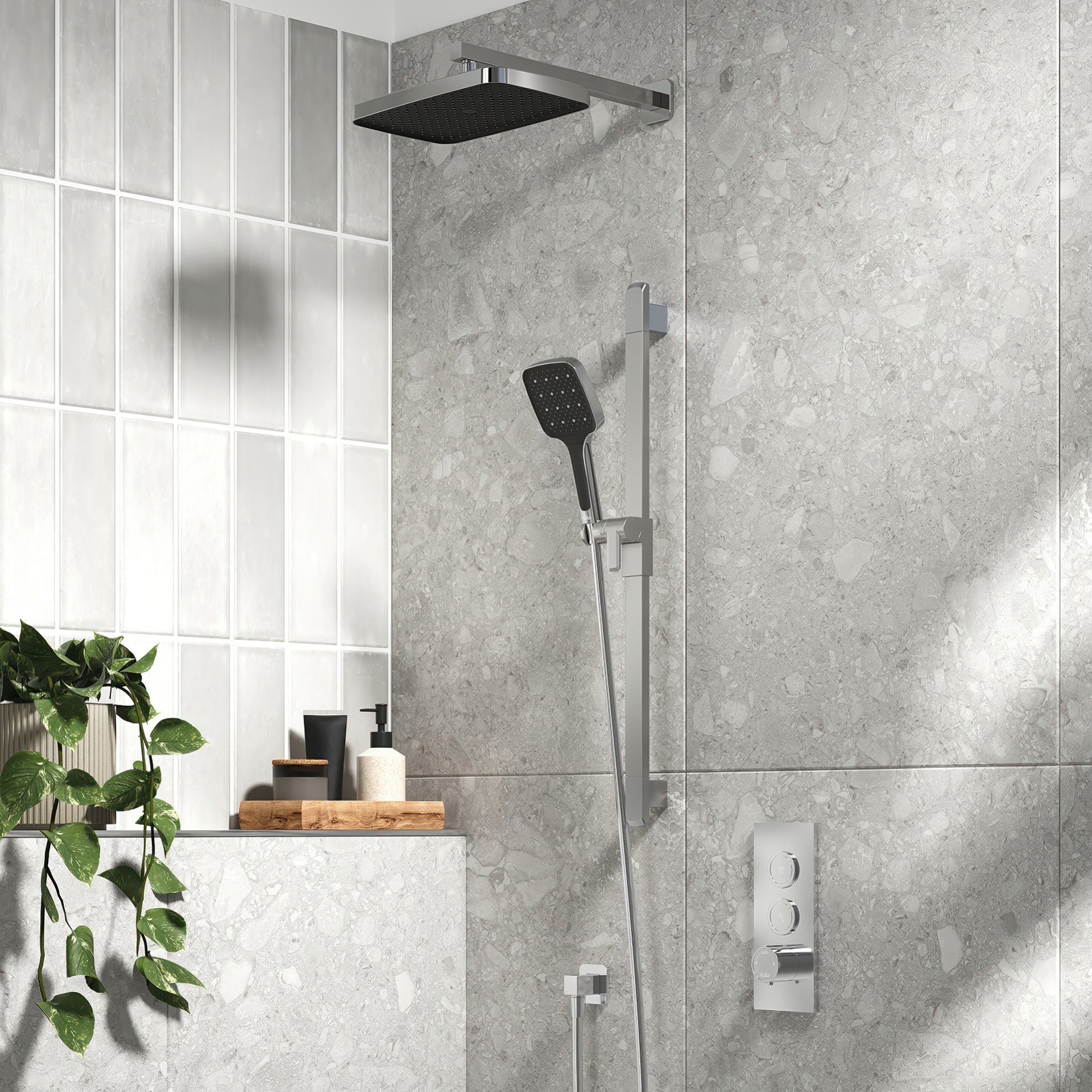 Featuring a temperature control knob and recessed push-buttons, you can easily use 2 or 3 components simultaneously for a personalized shower experience. The European push-button mechanism offers a quality tactile experience that's extremely pleasant and comfortable to use.