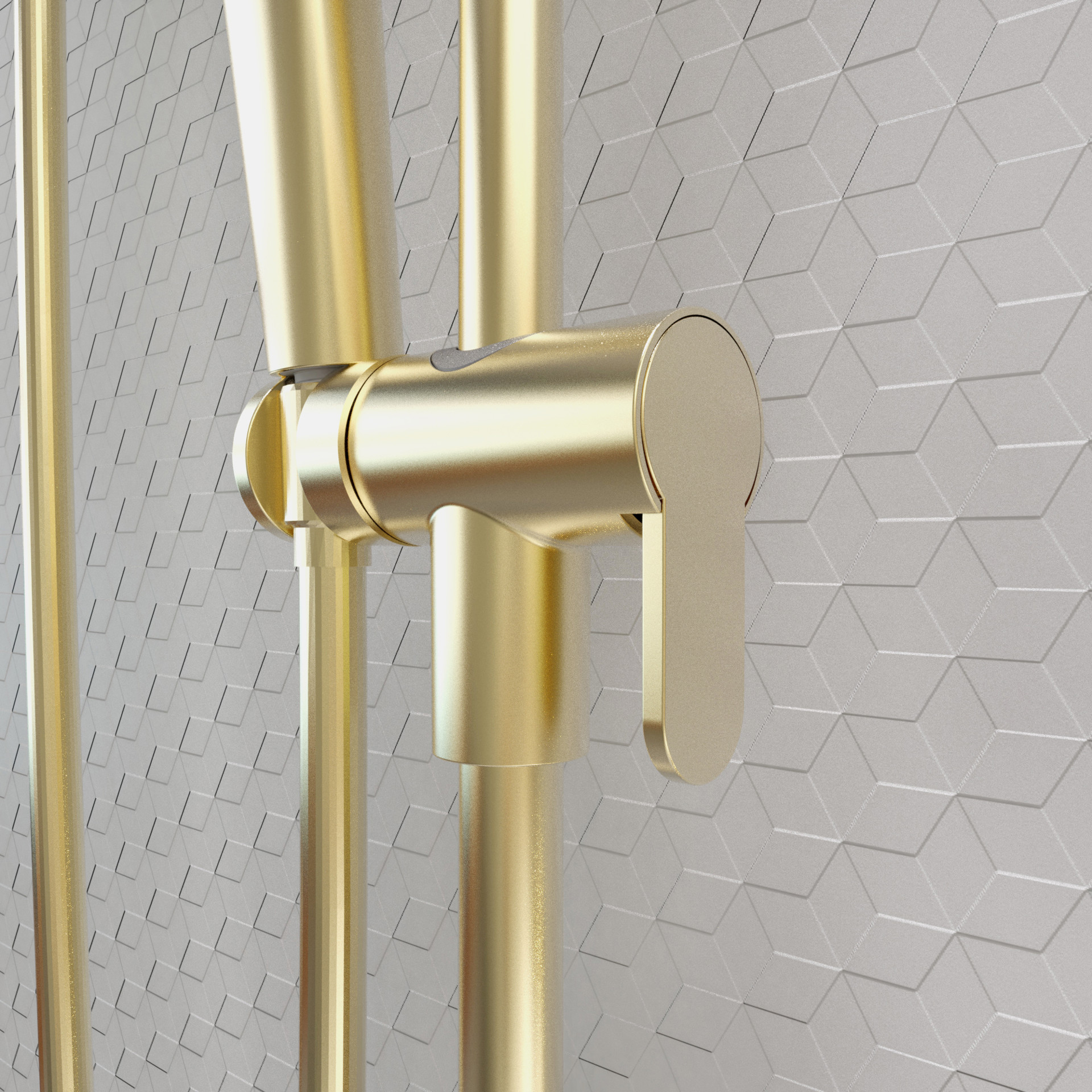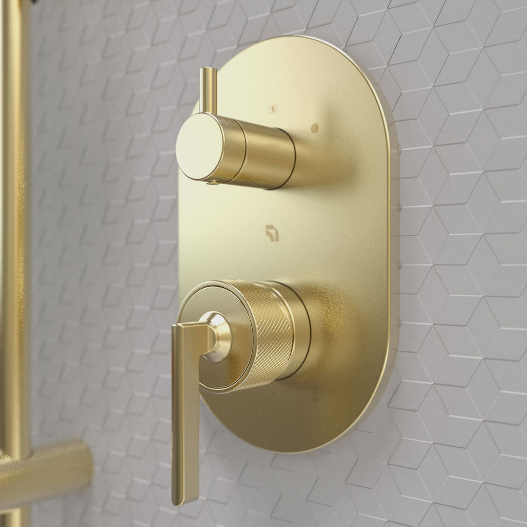 Its geometric lines end with finesse thanks to well-studied curves, creating the perfect industrial shower kit with knurled accents.