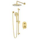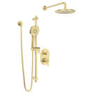 Indy complete shower faucet installation with rain shower head, 2 jet styles (spray & stream) handshower, 32" sliding bar and 2 way diverter valve, is as much a pleasure for the eyes as it is to the touch.