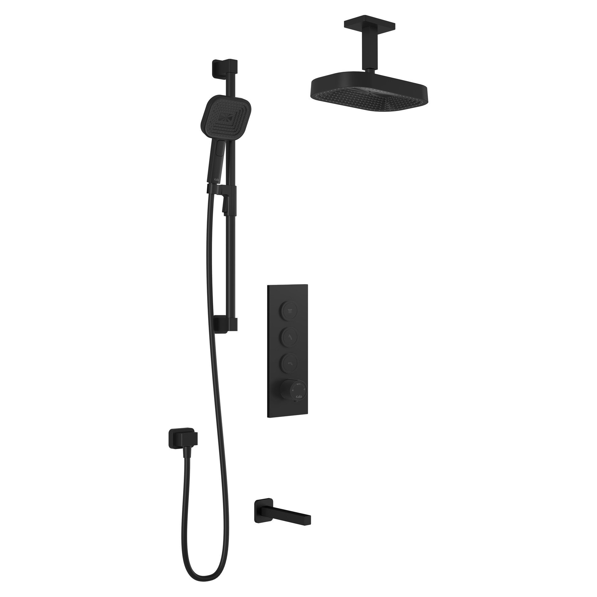 PREMIA SquareOne TB3 Shower Set with Push-Button Valve and Tub Spout Kalia BF2070-160-201