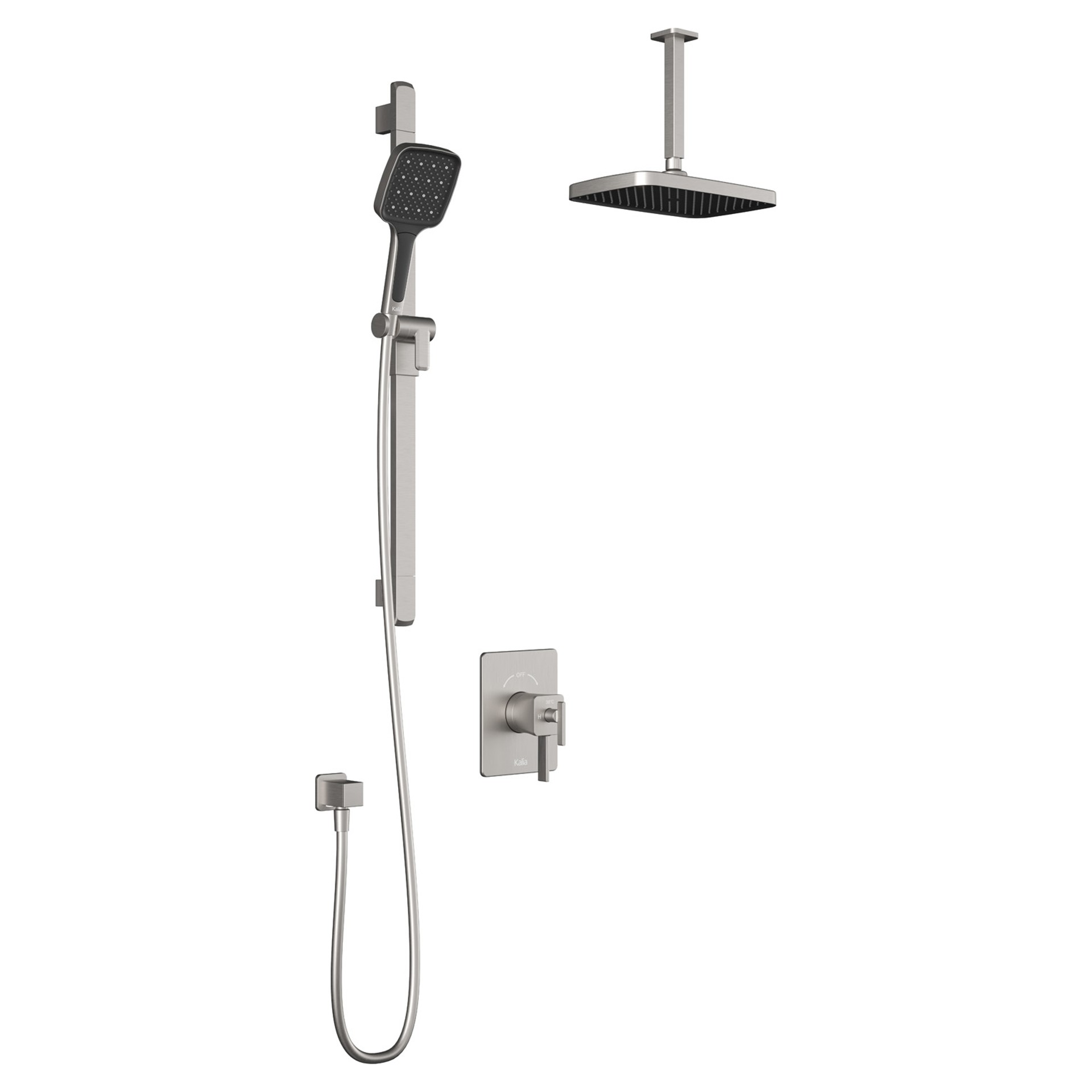 SquareOne PLUS Coaxial Shower Set with Ceiling Arm - Pure PVS Nickel Kalia BF1648-125-101