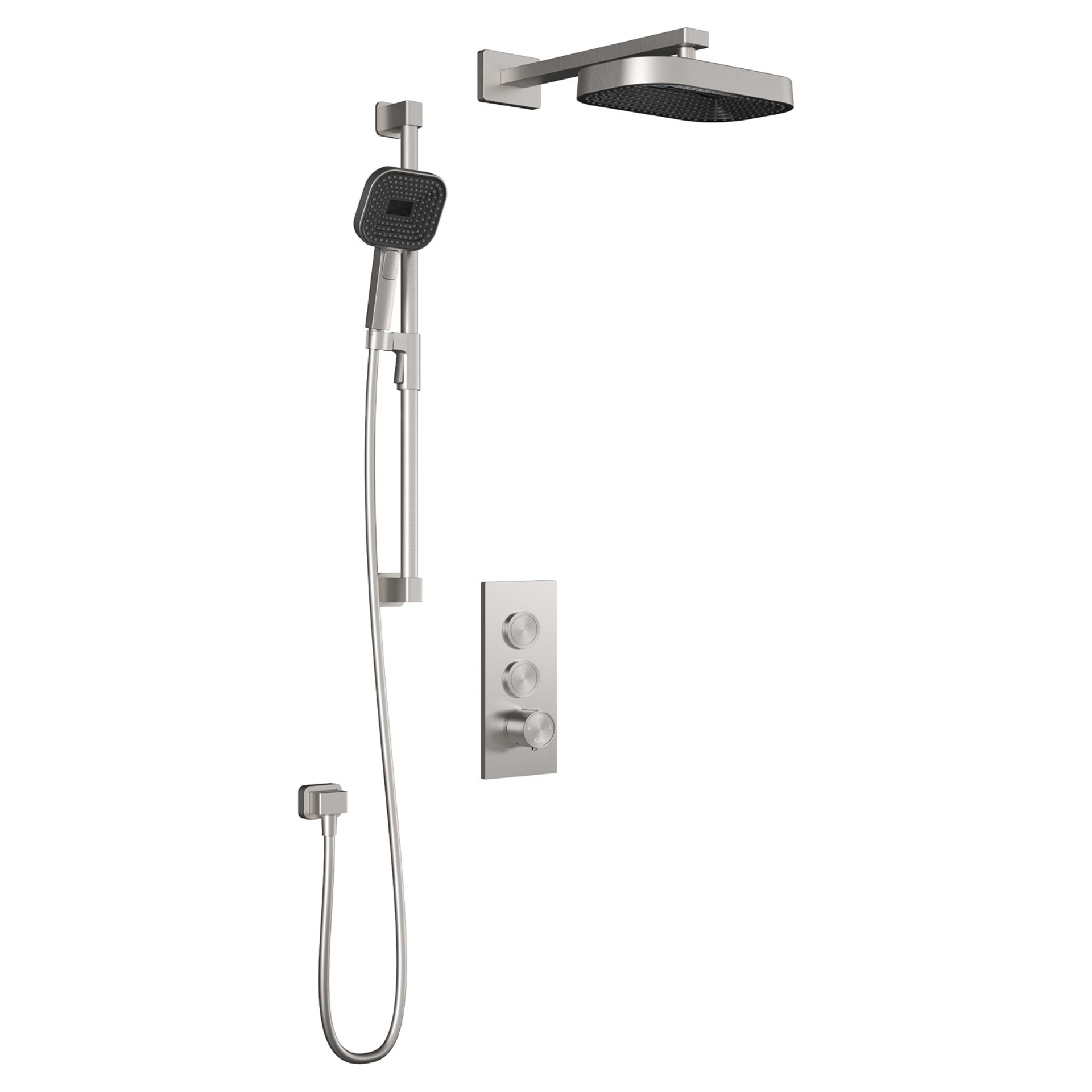 SquareOne PREMIA TB2 Shower Set with Push-Button Valve and Wall Arm - Pure Nickel Kalia BF2068-125-200