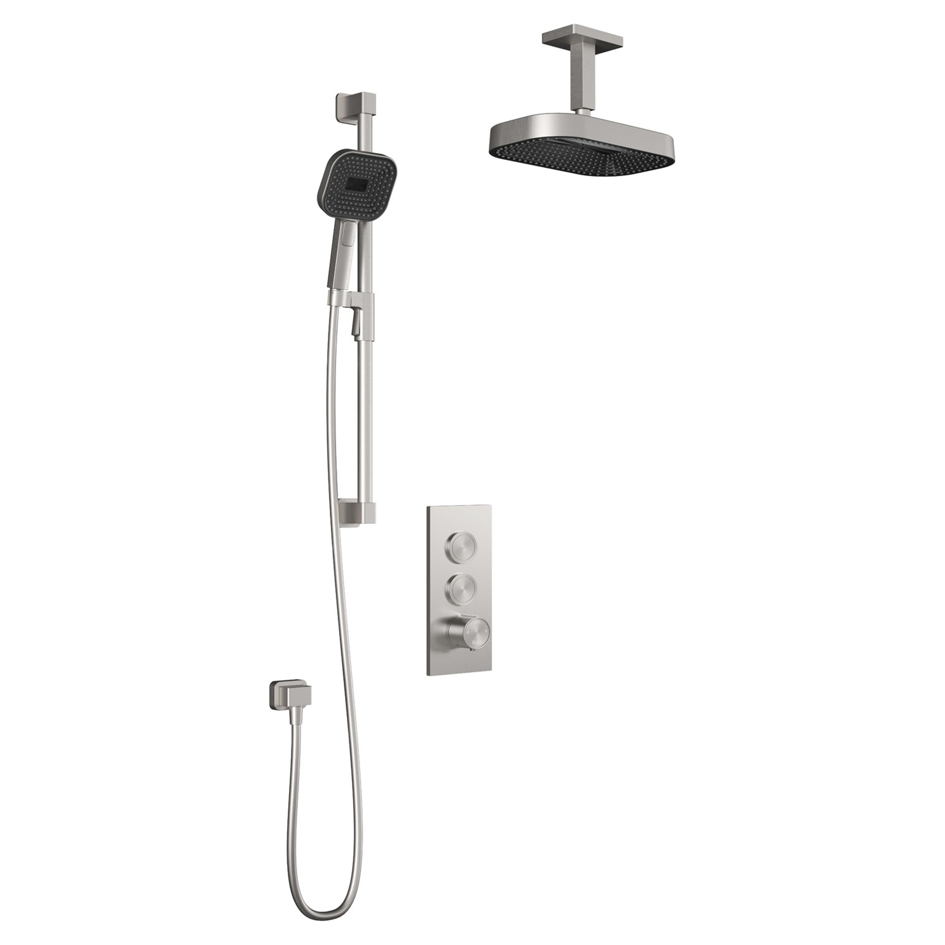 SquareOne PREMIA TB2 Shower Set with Push-Button Valve and Ceiling Arm – Pure Nickel Kalia BF2068-125-201