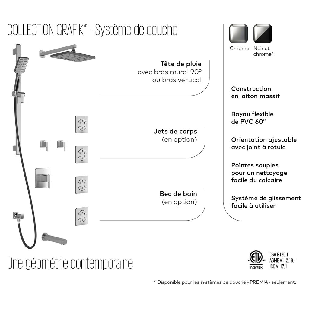 Grafik "PREMIA" thermostatic shower system with AQUATONIK T/P valve, bath spout and vertical arm - Chrome