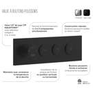 With the temperature control knob and recessed push buttons, you can activate two or three components at a time for a truly personalized shower.