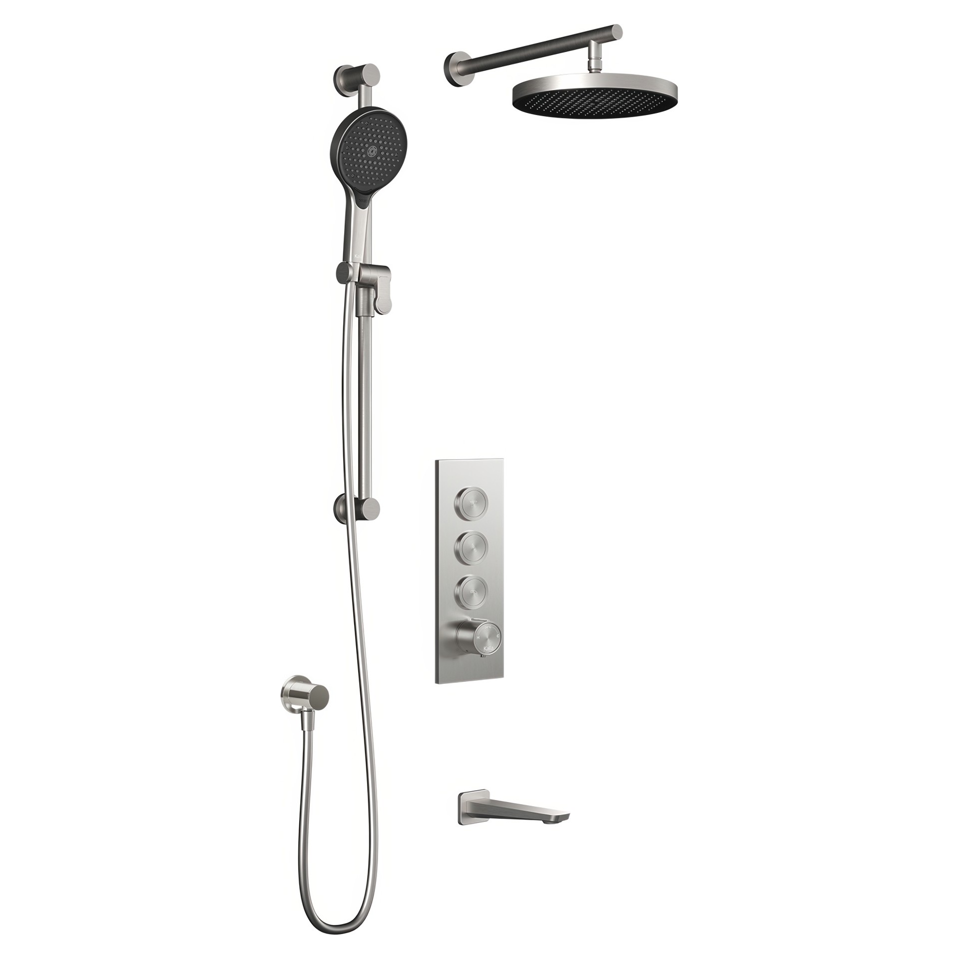 Featuring a temperature control knob and recessed push-buttons, you can easily use 2 or 3 components simultaneously for a personalized shower experience. The European push-button mechanism provides a quality tactile experience that's extremely pleasant and comfortable to use