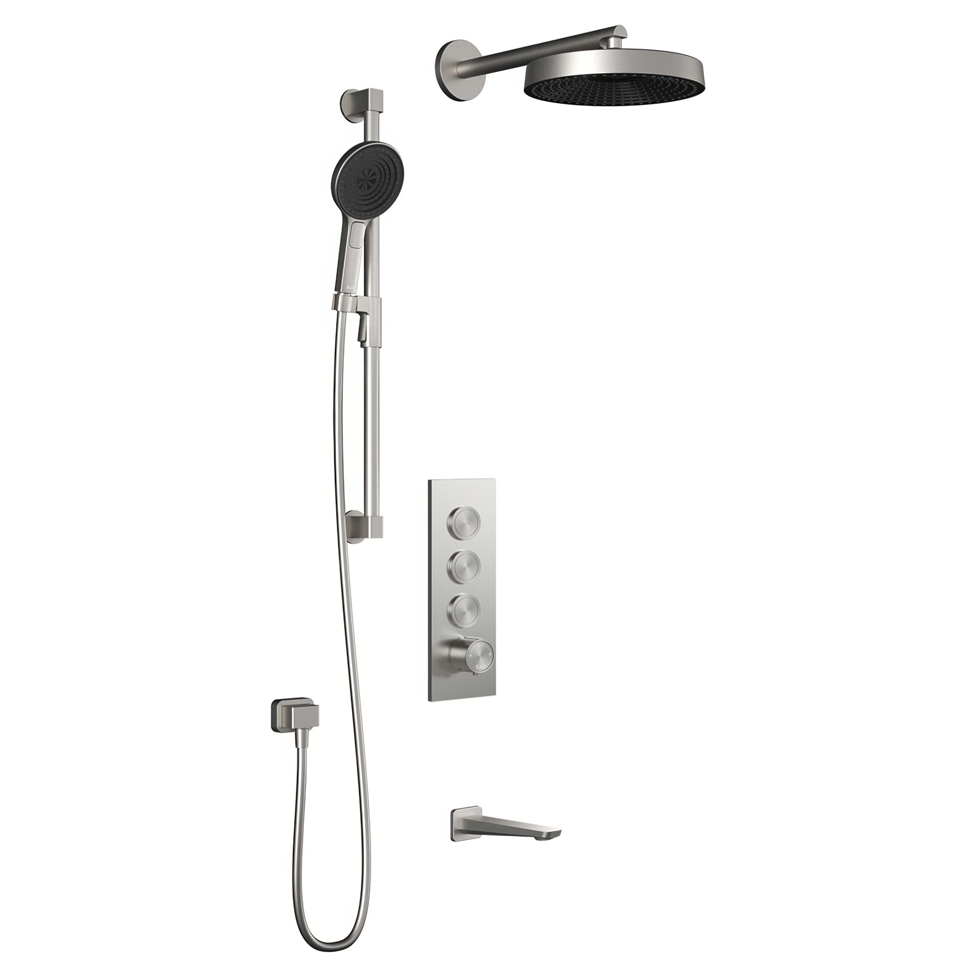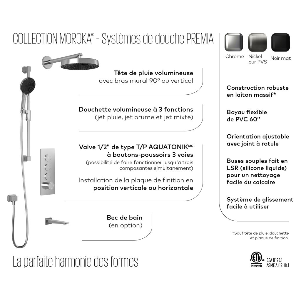 Moroka TB3 Premia Aquatonik Push-button Shower System with Wall Arm - Pure Nickel Kalia BF2097-125-200