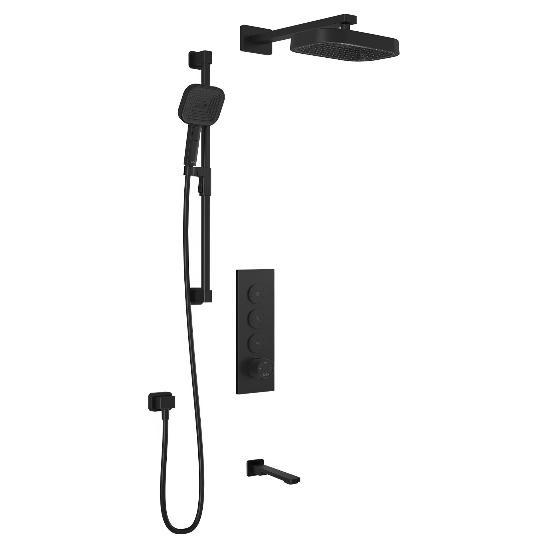 Kareo TB3 Premia Aquatonik Push-button Shower System with Walll Arm - Matte Black Kalia BF2101-160-200