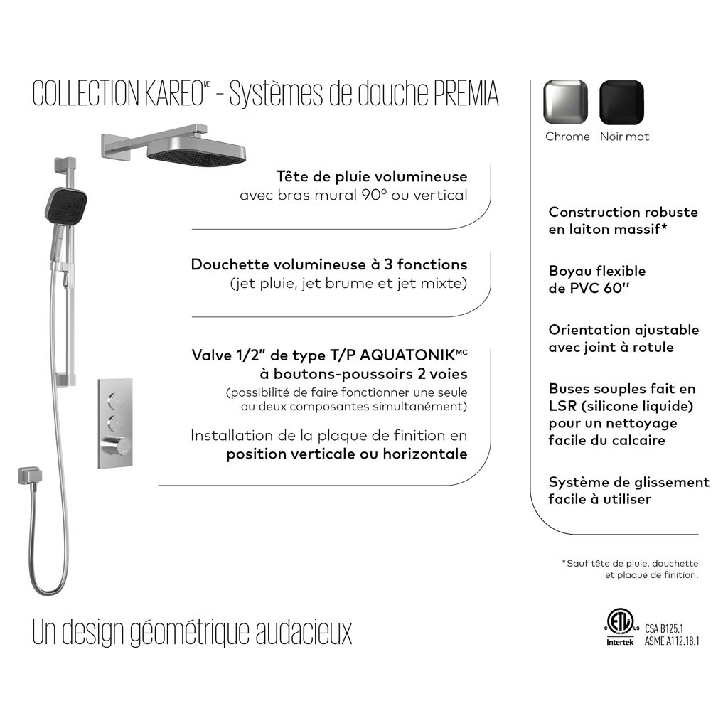 Kareo TB3 Premia Aquatonik Push-button Shower System with Vertical Arm - Matte Black Kalia BF2101-160-201