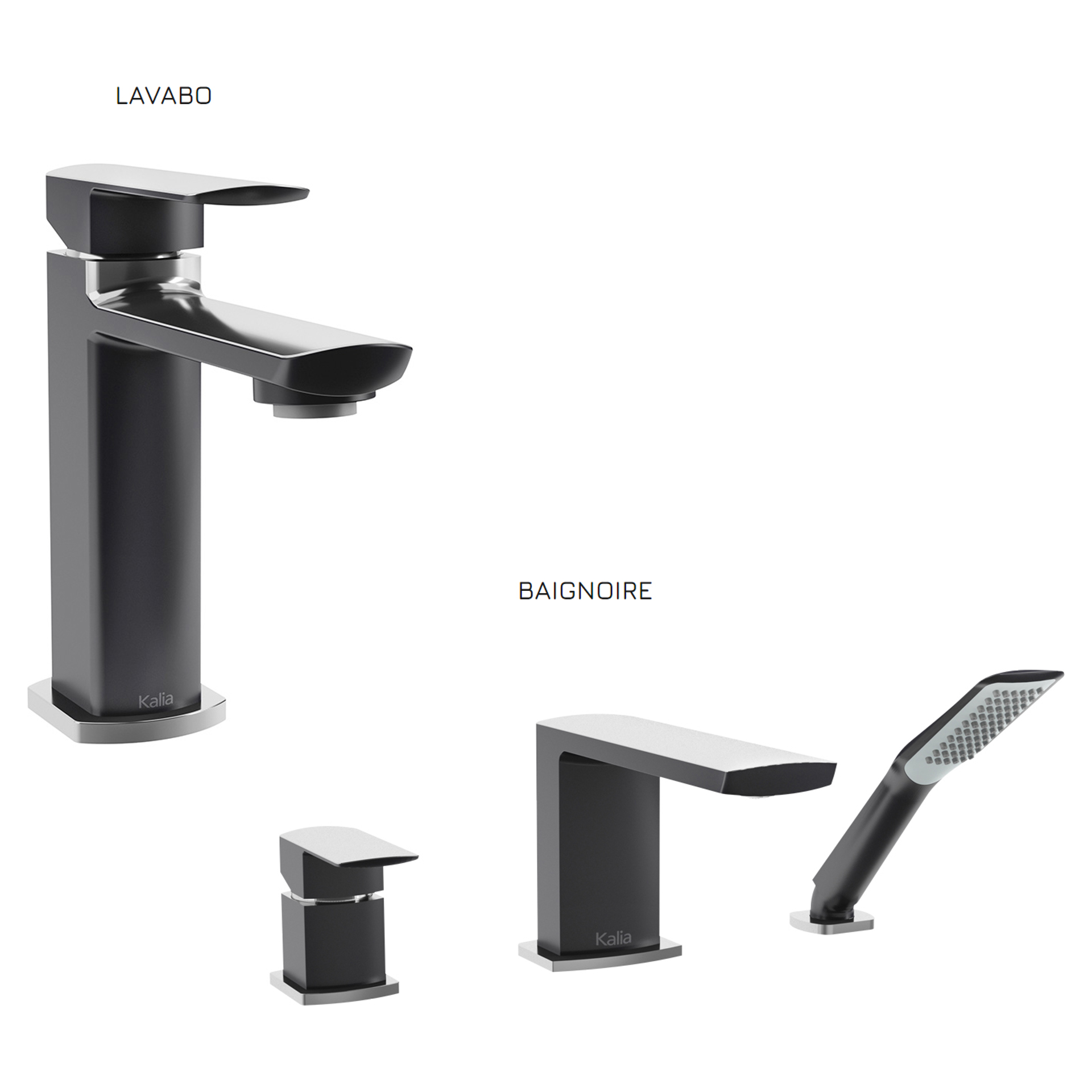 Grafik Set of Sink and Tub Faucets - Black and Chrome Kalia *BF1290-150/BF1292-150