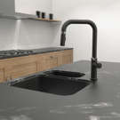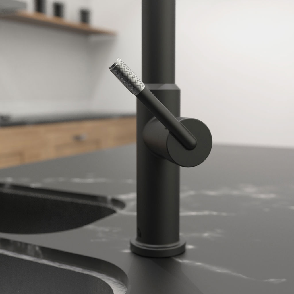 The ADORE kitchen faucet, is the ideal companion to any modern kitchen. Its bold looks and textured accents are the perfect combination between functionality and style.
