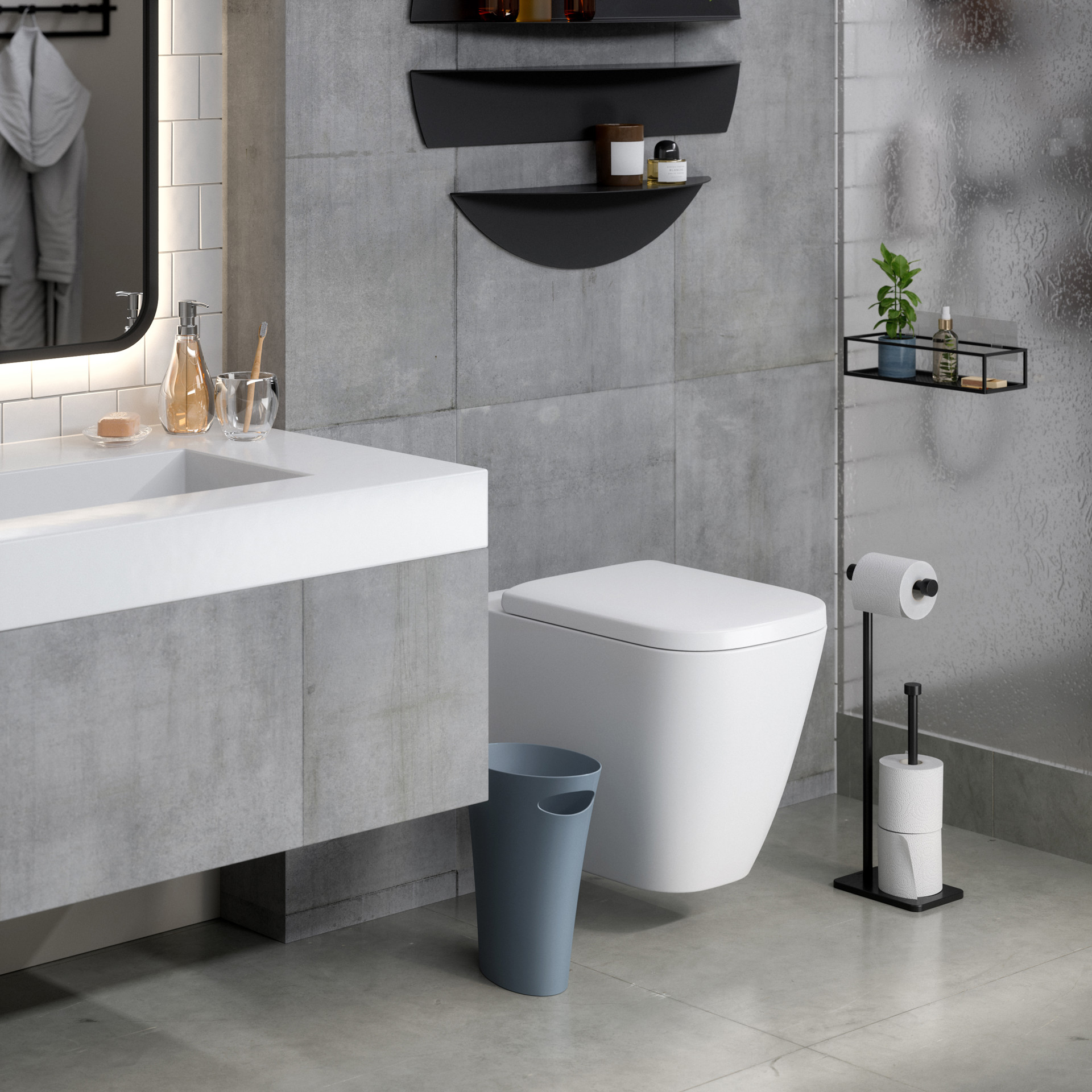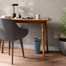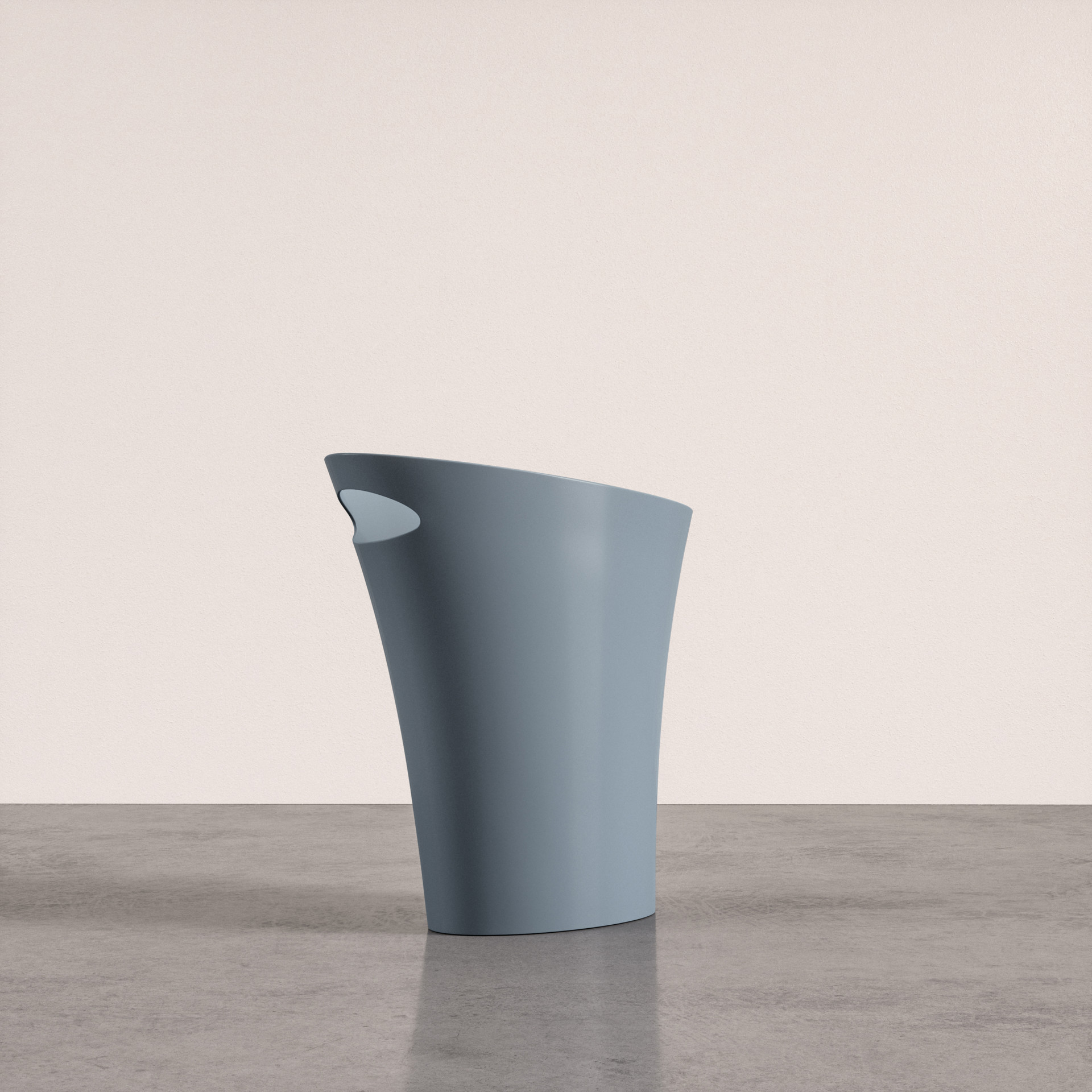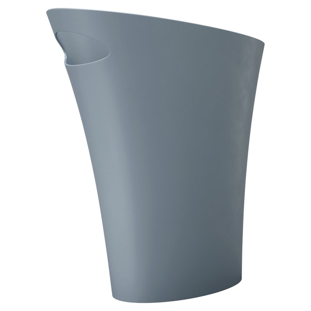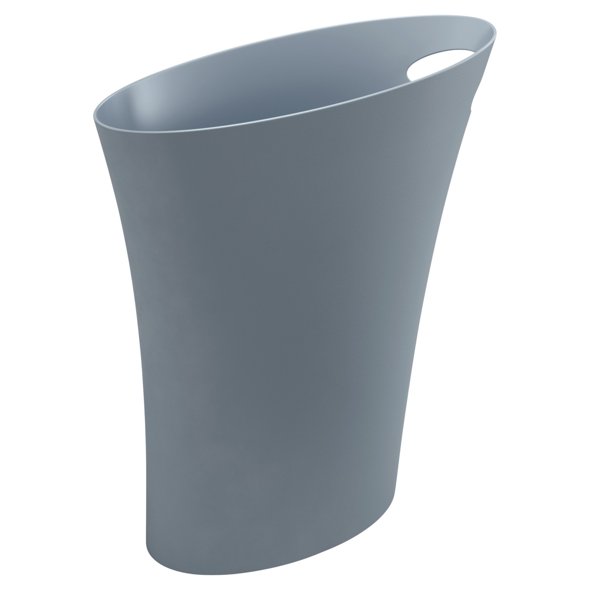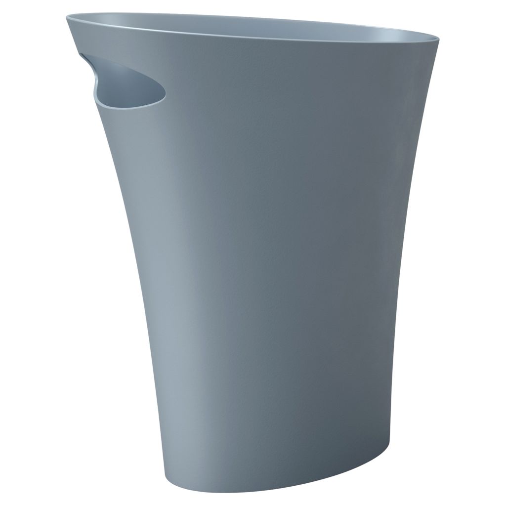 Umbra Skinny bin is a slim and stylish trash can, with a narrow footprint, designed to fit into small spaces and hold up to 2 gallons.