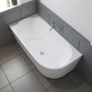 Make contemporary elegance your everyday life. This corner freestanding bath integrates seamless design and ease of use. This unique bathtub is installed in a corner, against two space-saving walls. Easy-to-clean, high-gloss white acrylic construction offers a beautiful, versatile addition to your home spa.