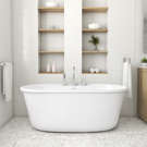Upgrade your bathroom's aesthetic appeal with the Emica freestanding bathtub and Keros deck mounted faucet.