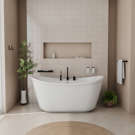 Crafted with high-quality materials, both the Emica bathtub and Keros deck-mount faucet complete the perfect bathroom renovation project, combining durability and style.