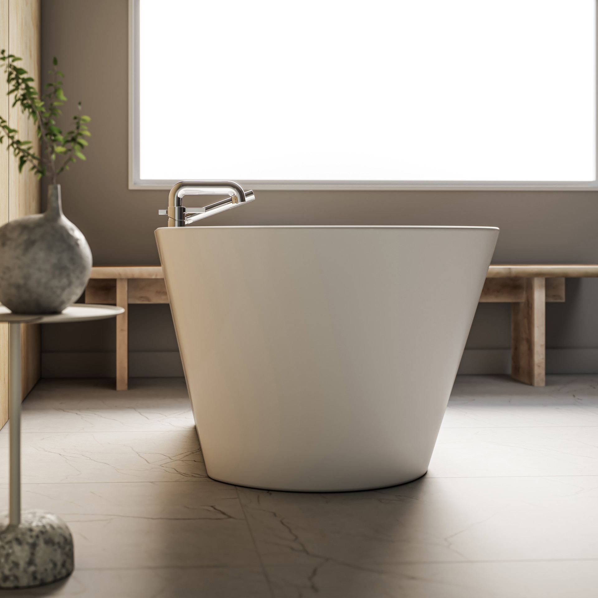 - Freestanding 1-piece acrylic bathtub (seamless design)