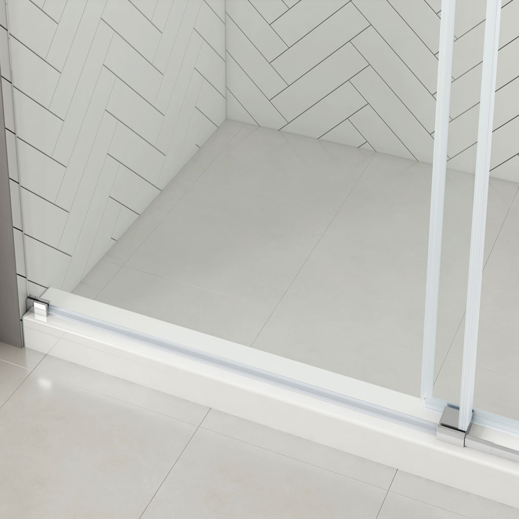 Its 4-roller design ensures smooth door movement, while the double-sided handles combine functionality and style. The reversible installation makes it an excellent choice for alcove showers and allows your contractor to install the door on either the left or right side, depending on your space.