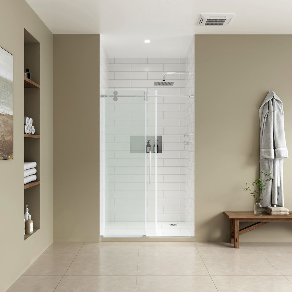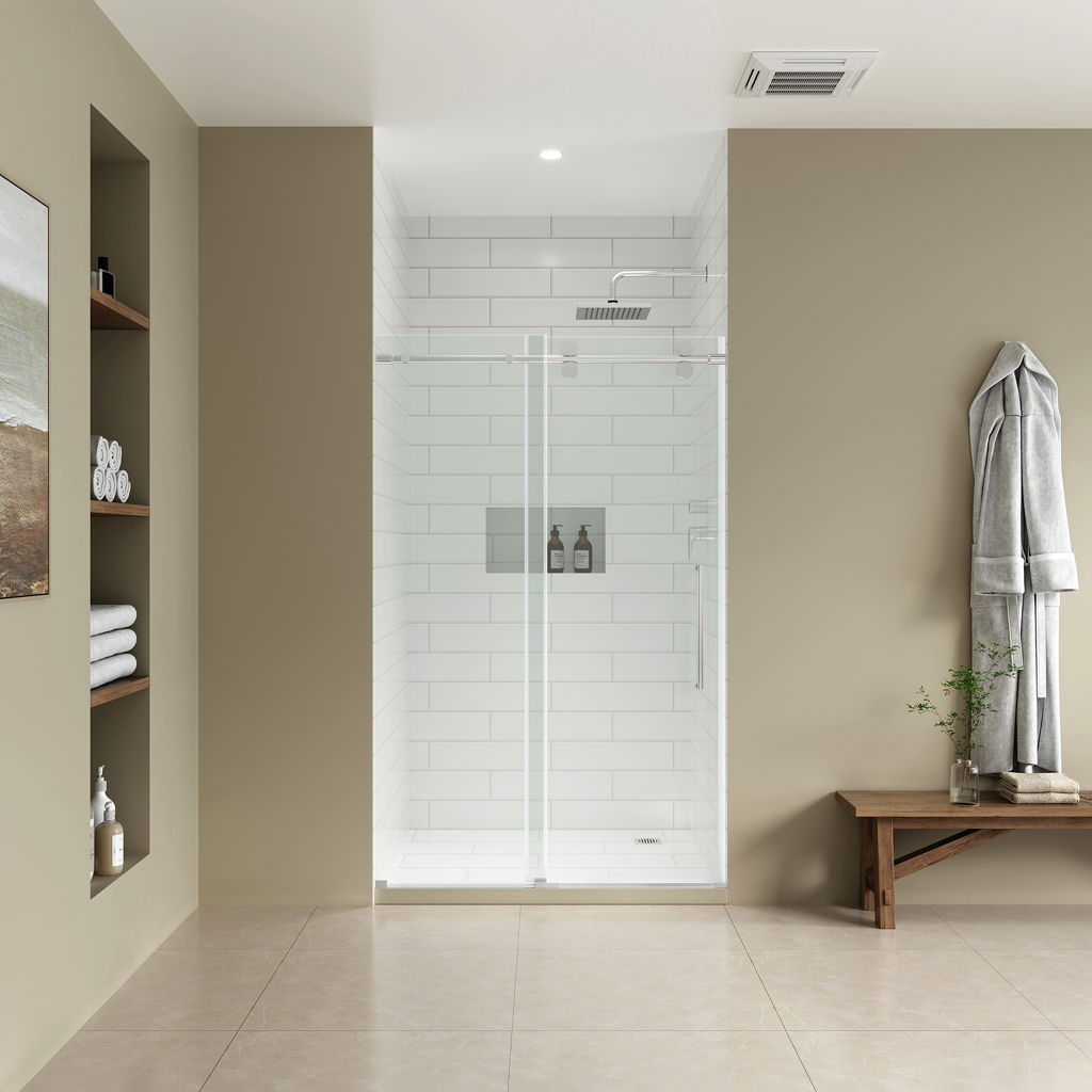 • 48 x 74 in. alcove sliding shower door for a modern look