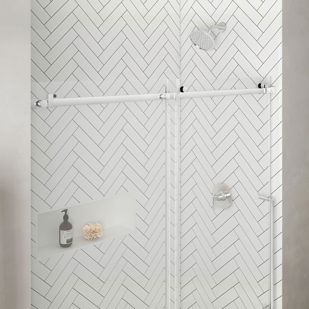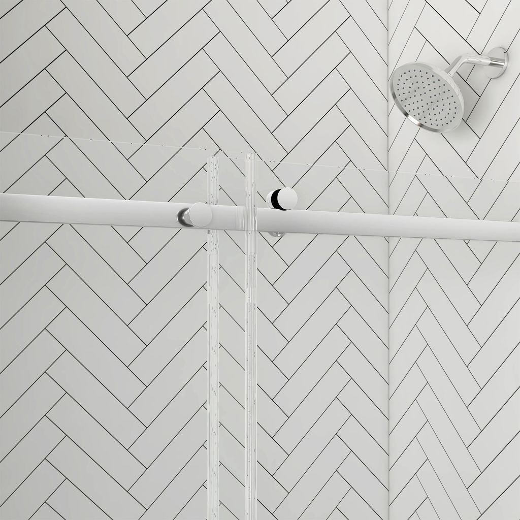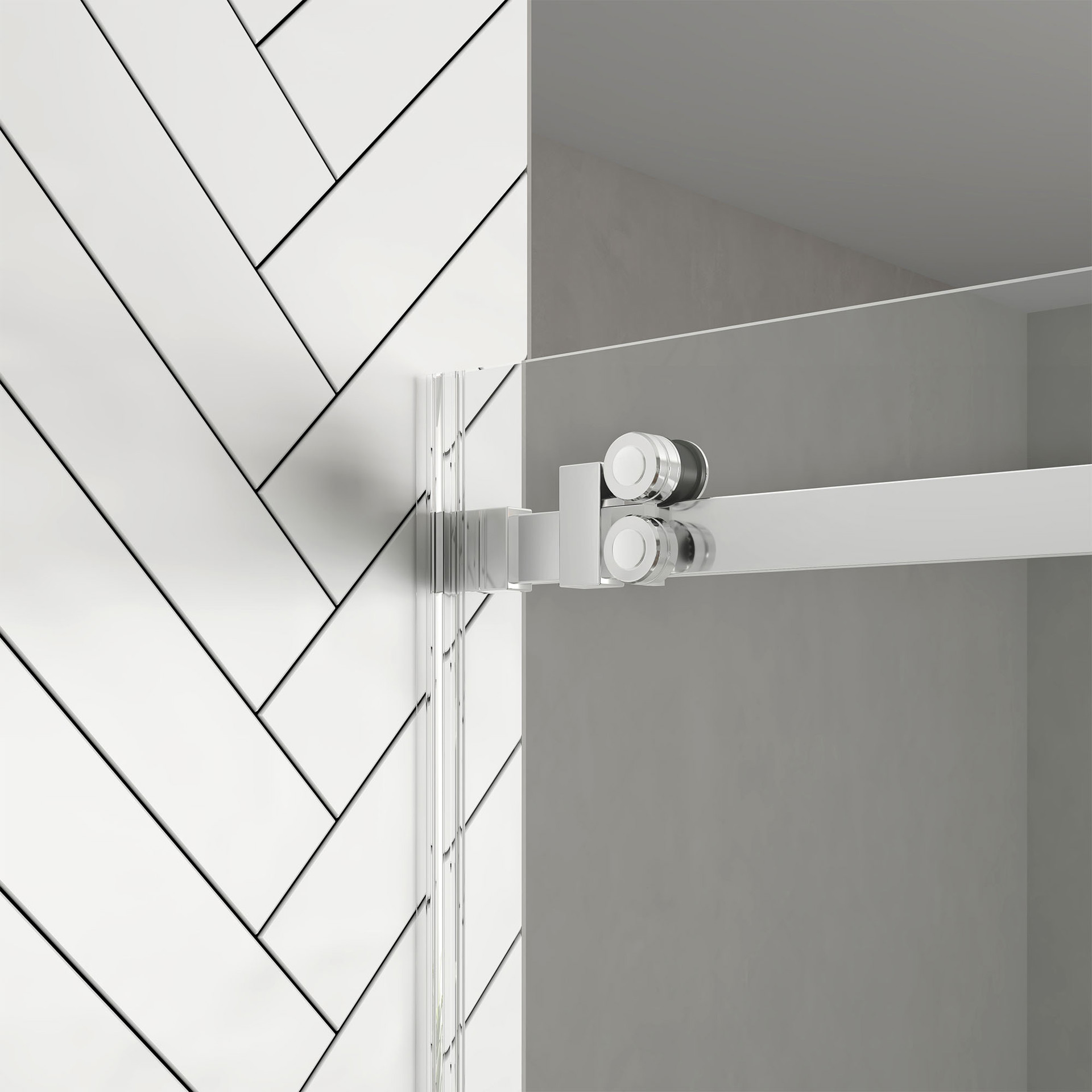 Enhance your bathroom style with the OVE Selby frameless sliding shower door. Designed to combine style and functionality, it features an oversized slim handle and chrome hardware for a modern, elegant touch.