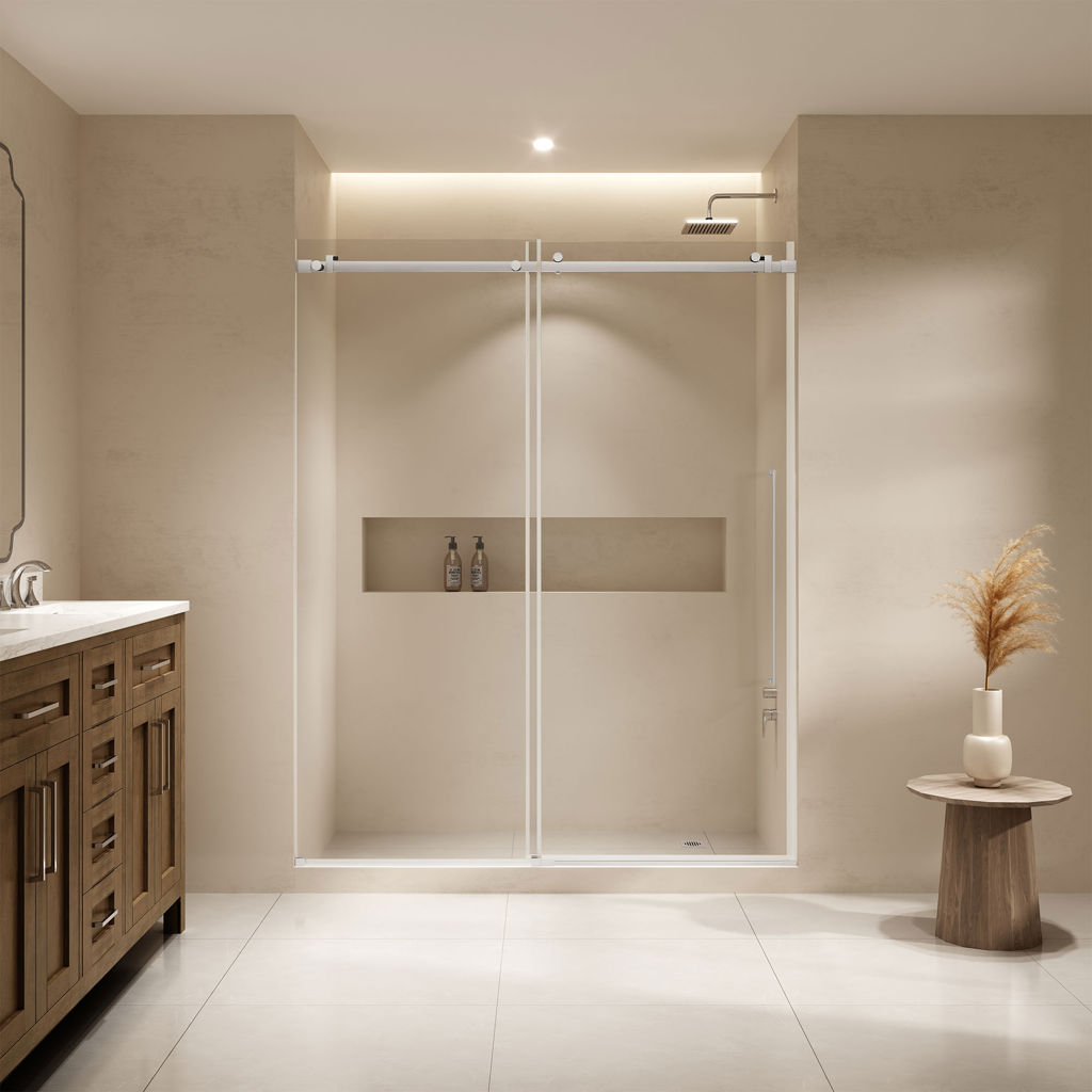 • 60 x 74 in. alcove sliding shower door for a modern look