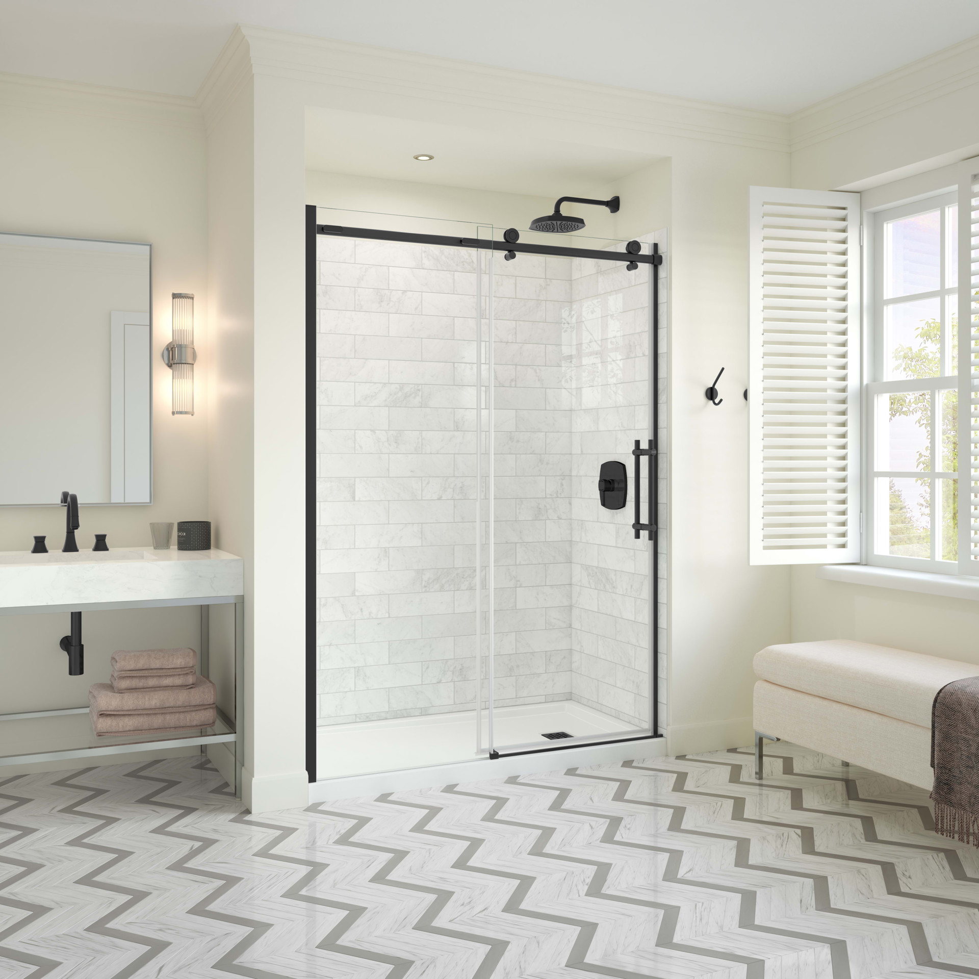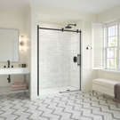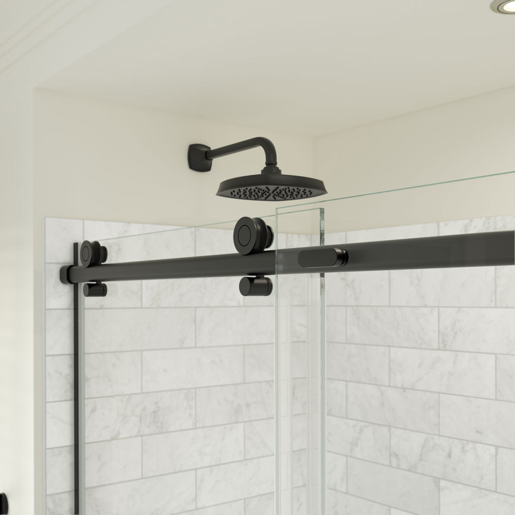 The Odyssey shower door gives a modern and refined look to any bathroom with its fluid movement and elegant finishes such as chrome, brushed nickel and matte black.
