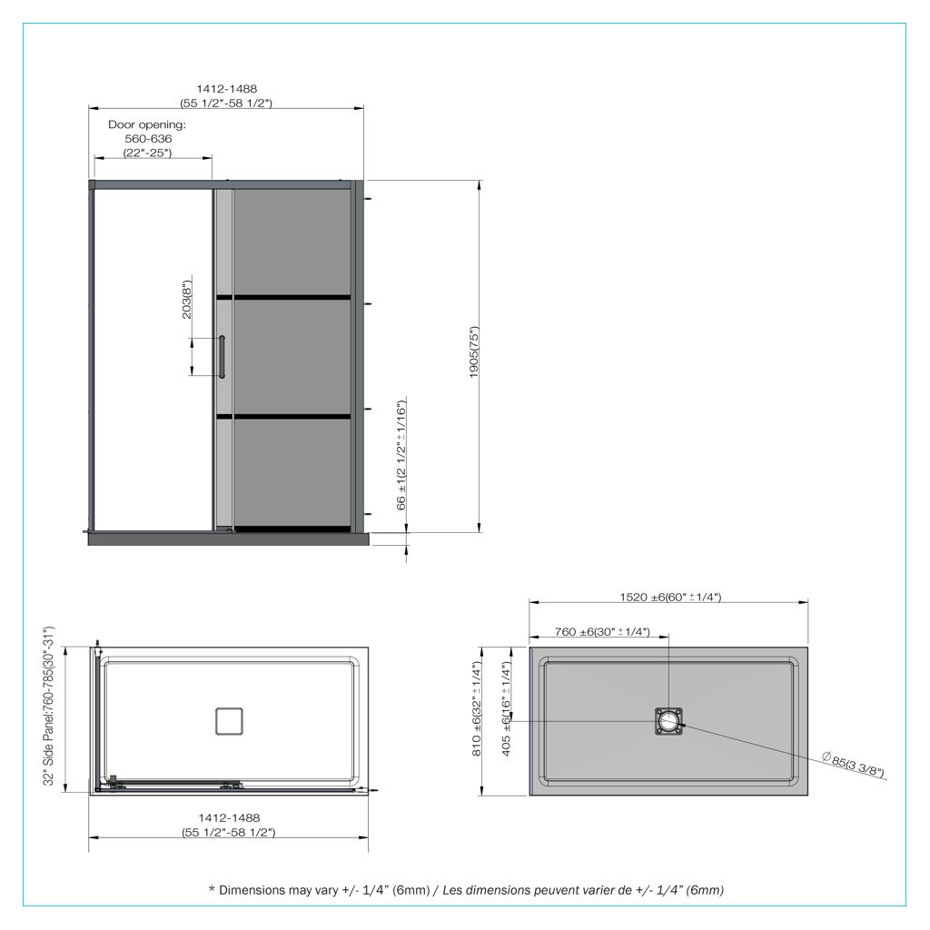 Torbay Shower Door Kit 60" X 32" Bain A&E SD2-3260-BLK