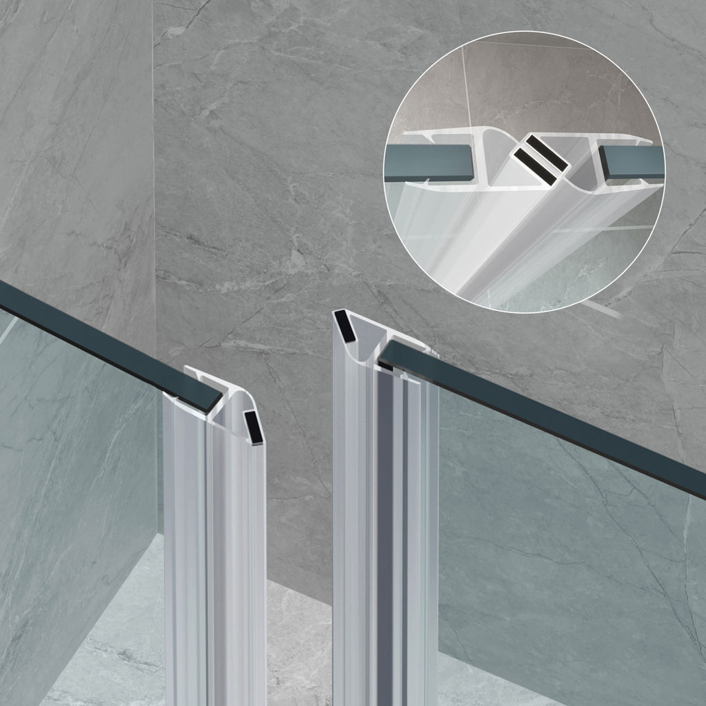 The certified 8 mm (5/16 in) tempered glass features magnetic strips and engineered hardware for smooth, leak-free opening and closing.