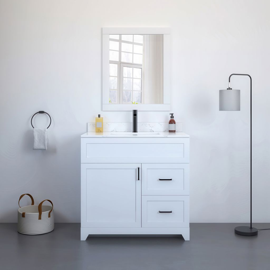 Our vanities are crafted from MDF for durability and elegance, with engineered stone countertops and matching backsplash for an elegant, cohesive look.