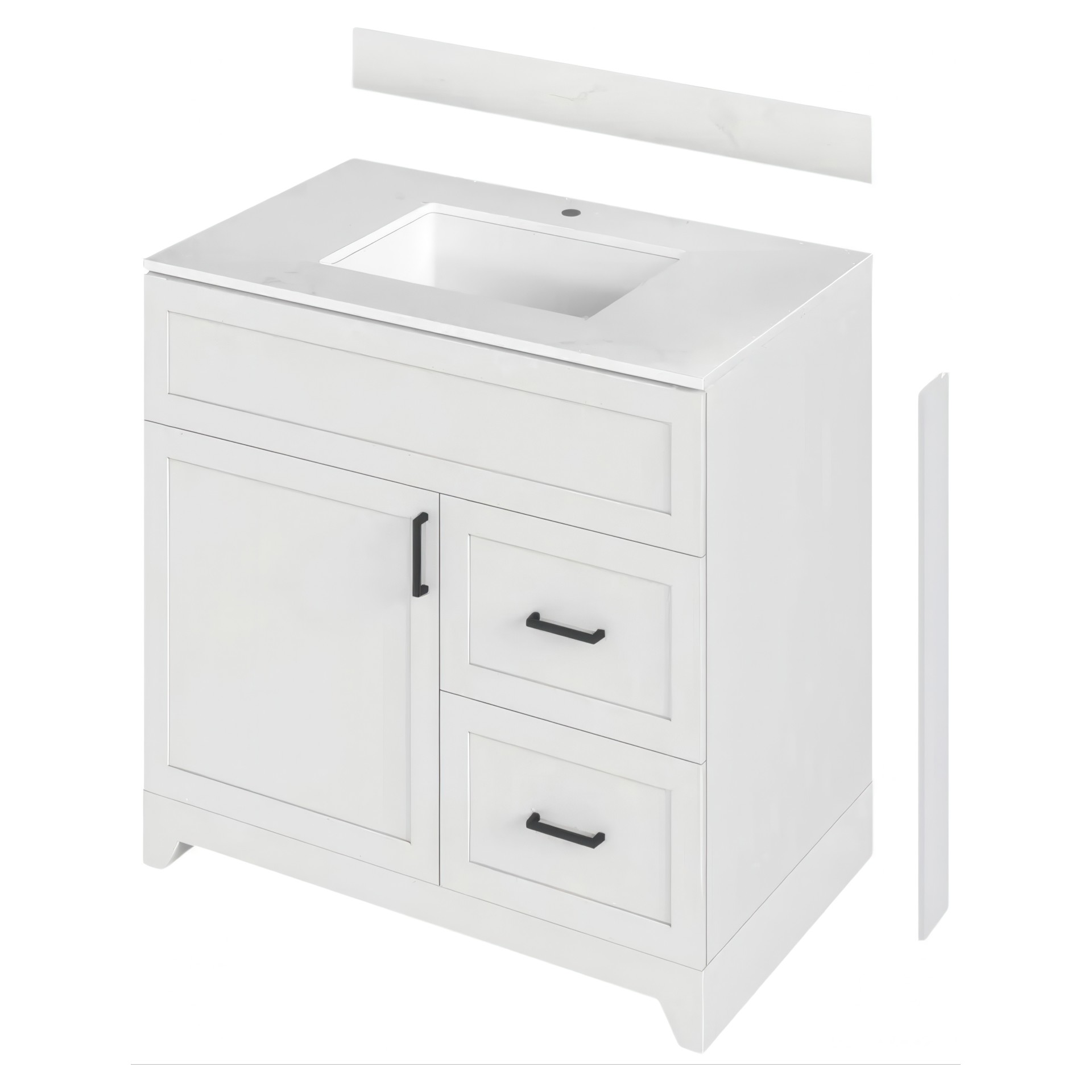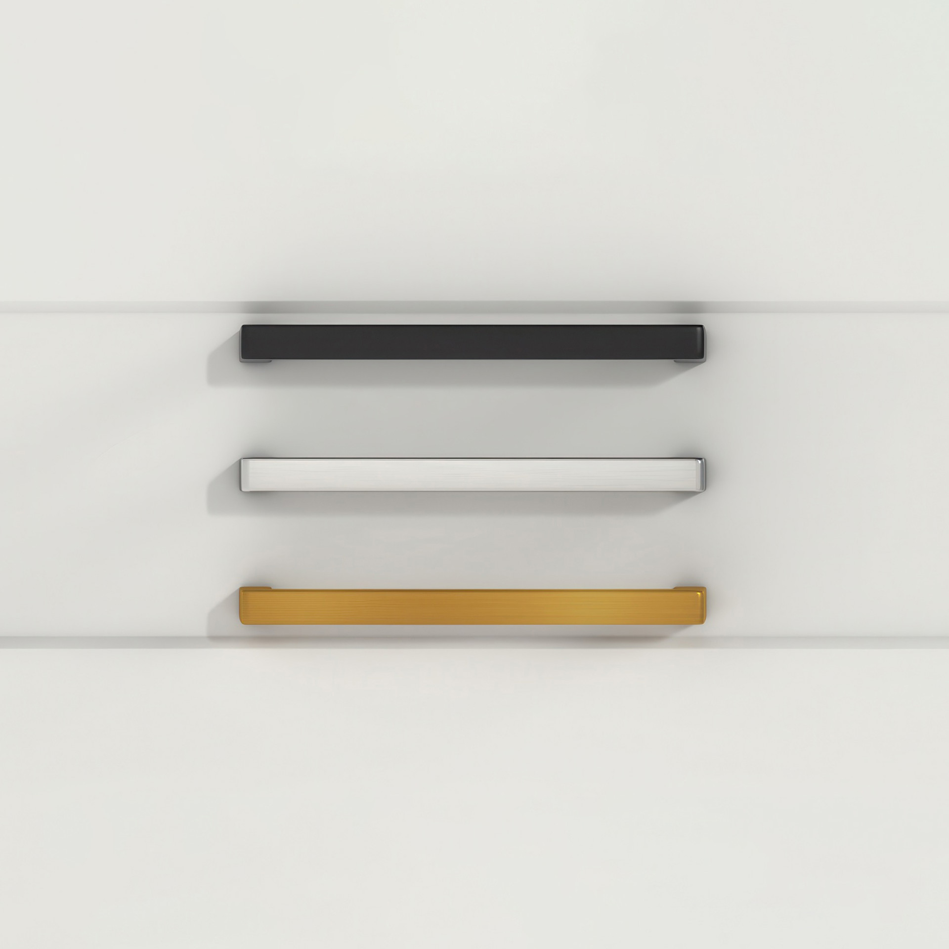 To perfectly match your faucets, each vanity comes with three handle options in matte black, brushed nickel and gold.
