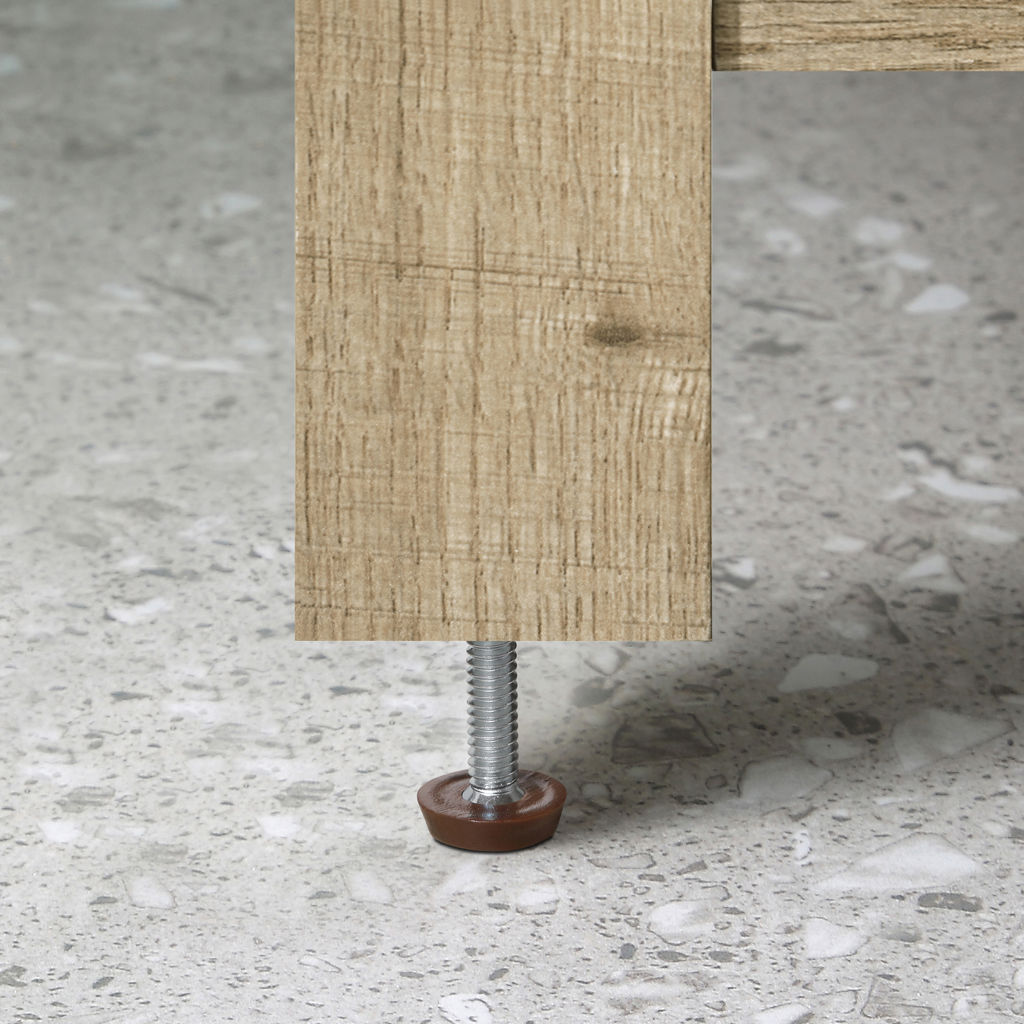 This freestanding unit features a two-door cabinet with a height-adjustable interior shelf and a bottom drawer all equipped with soft-close mechanisms for quiet convenience.