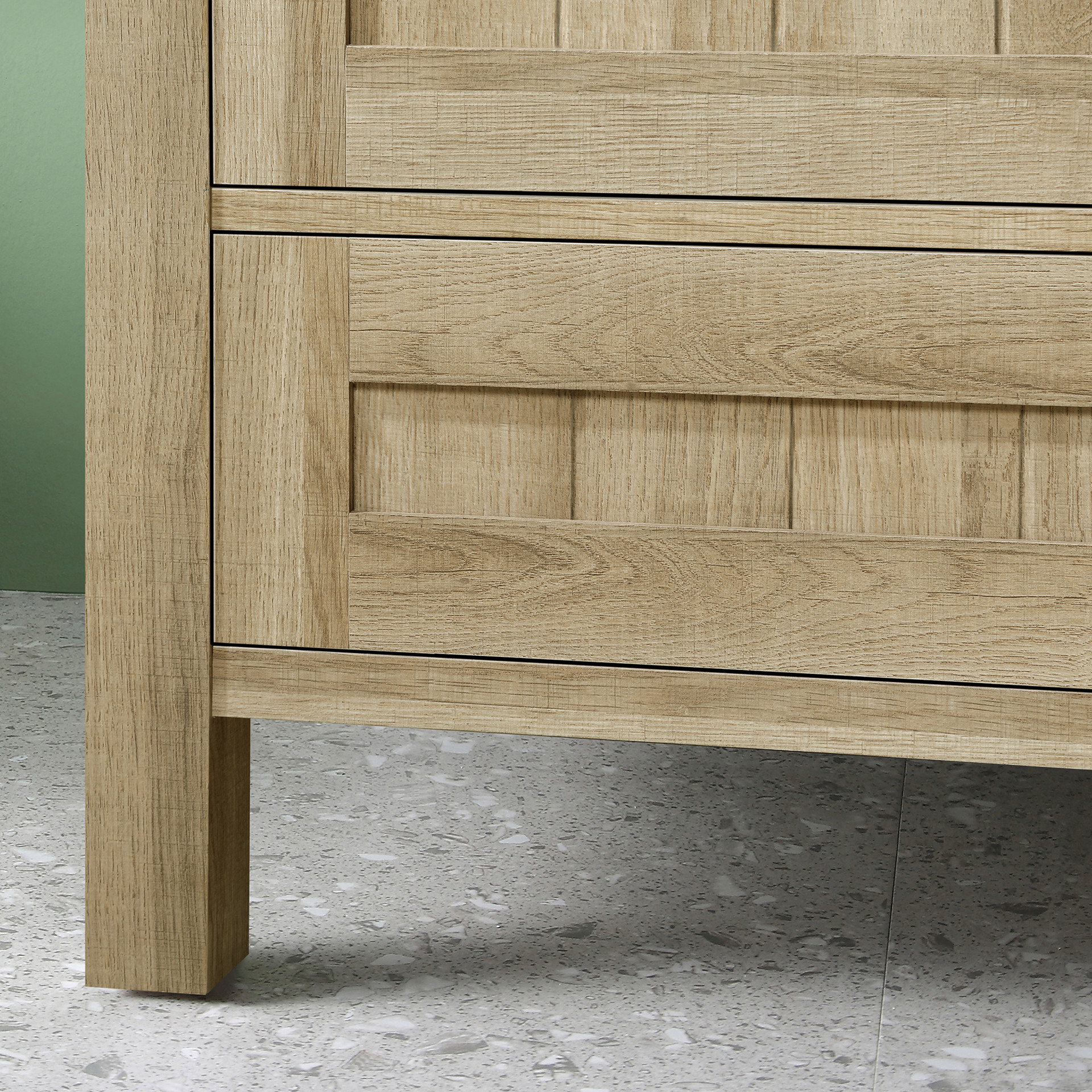 Available in multiple sizes, the Kansas vanity combines function and style with its elegant tongue-and-groove panel detailing, offering a timeless look that will last for years.