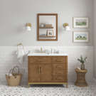 Designed for powder rooms and smaller bathrooms, don’t let its compact size fool you, thanks to a two-door cabinet with a tilt-down drawer, it offers plenty of space to keep your everyday essentials organized and out of sight.
