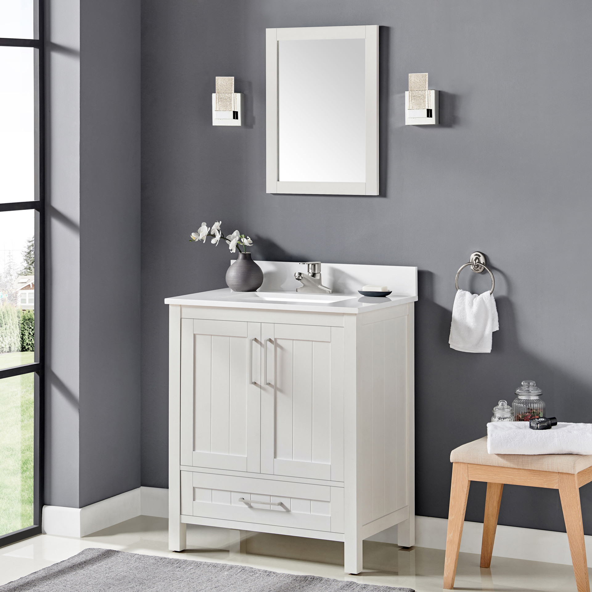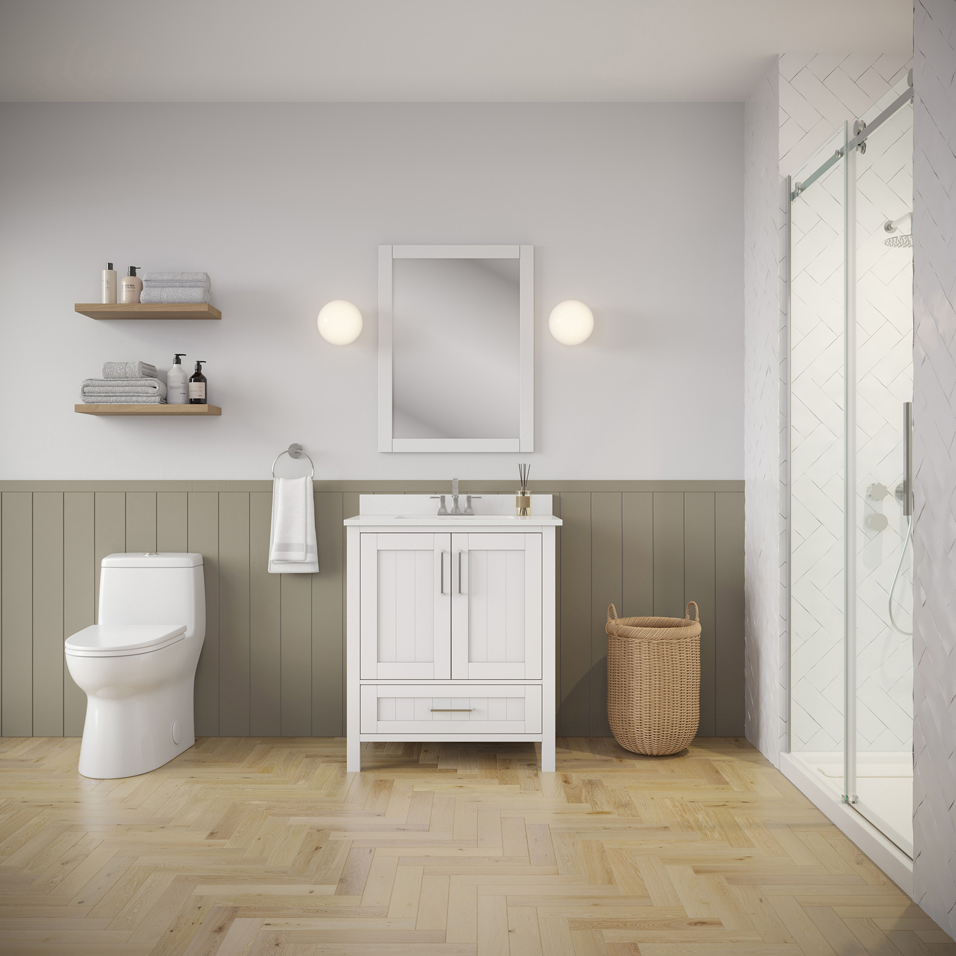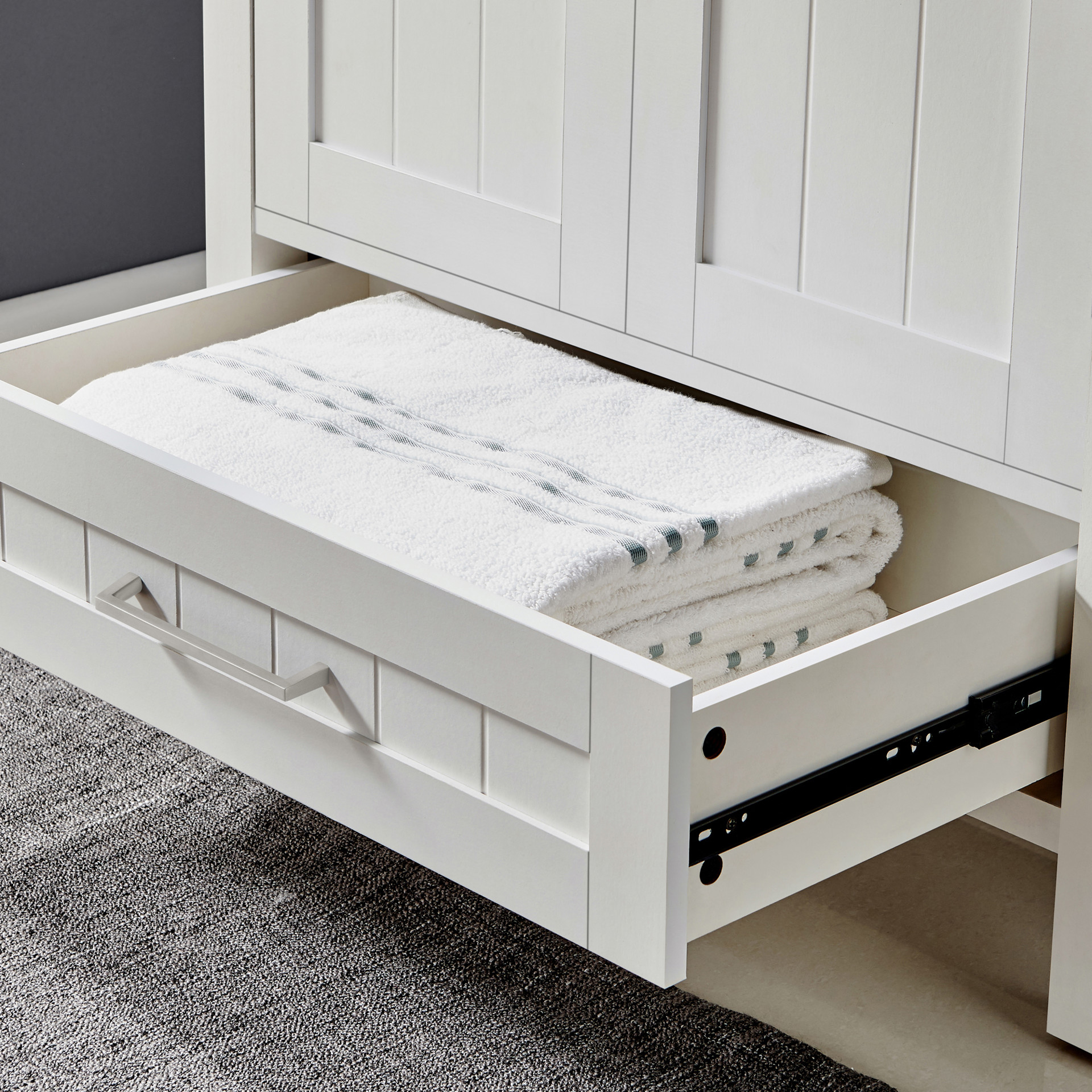 Available in a variety of colors and sizes, the Kansas vanity combines functionality and style, with its elegant tongue-and-groove paneling designed to stand the test of time.
