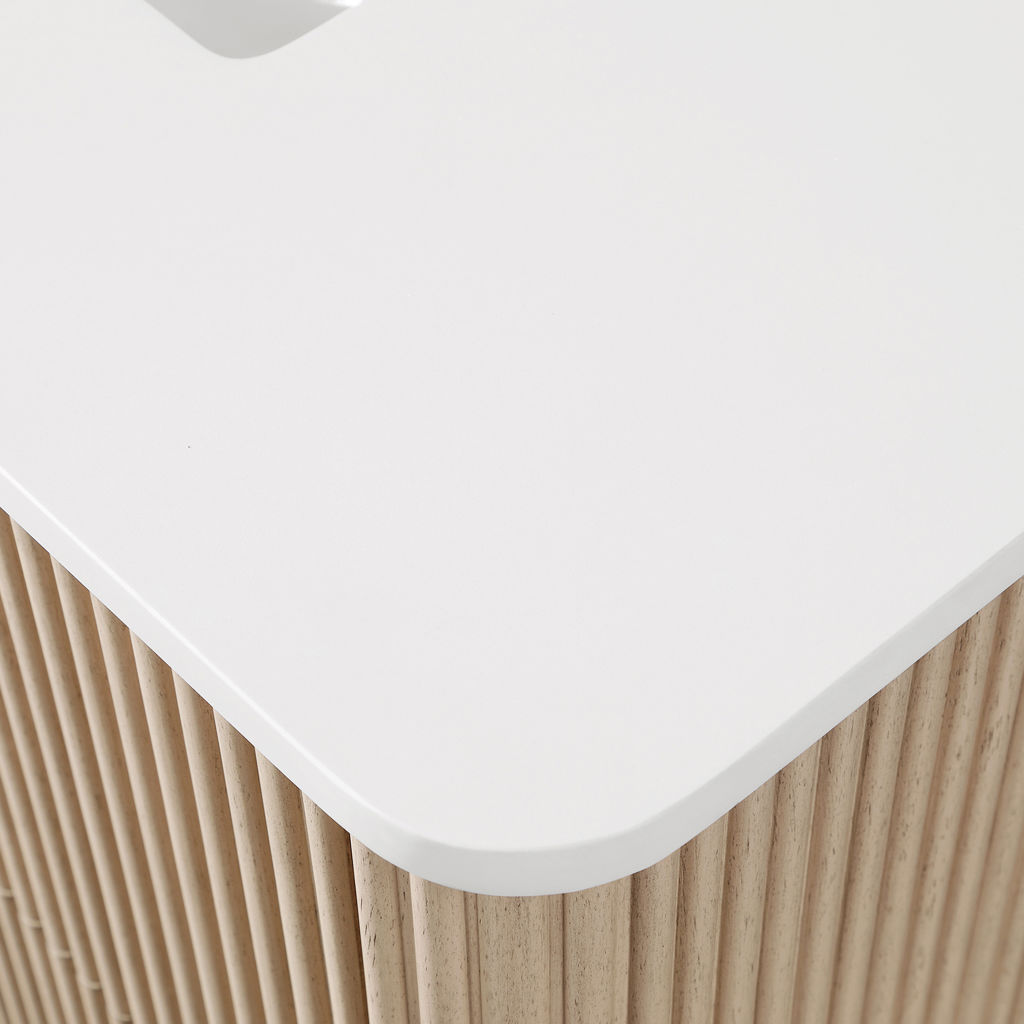 • Elegant fluted design and rounded corners on cabinet and countertop for a standout modern look