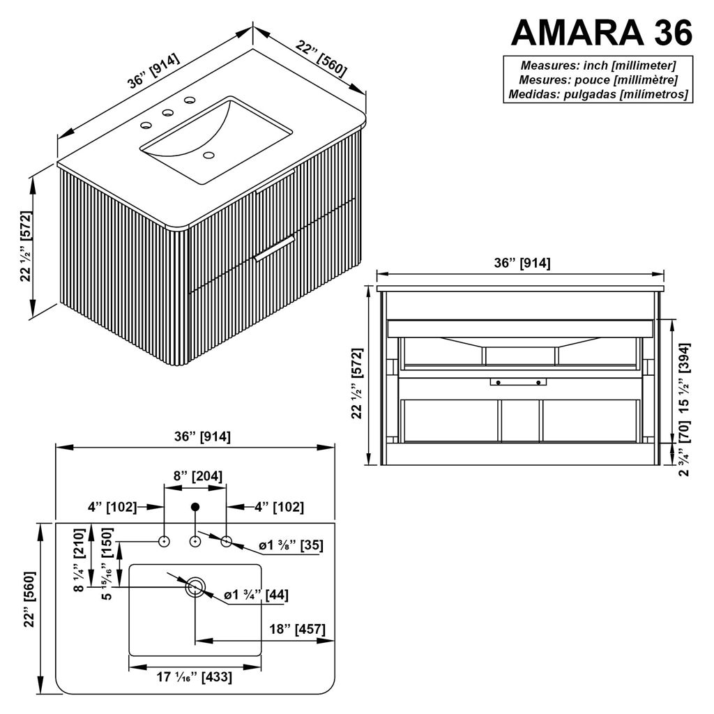 • Bathroom Vanity Width : 36 in