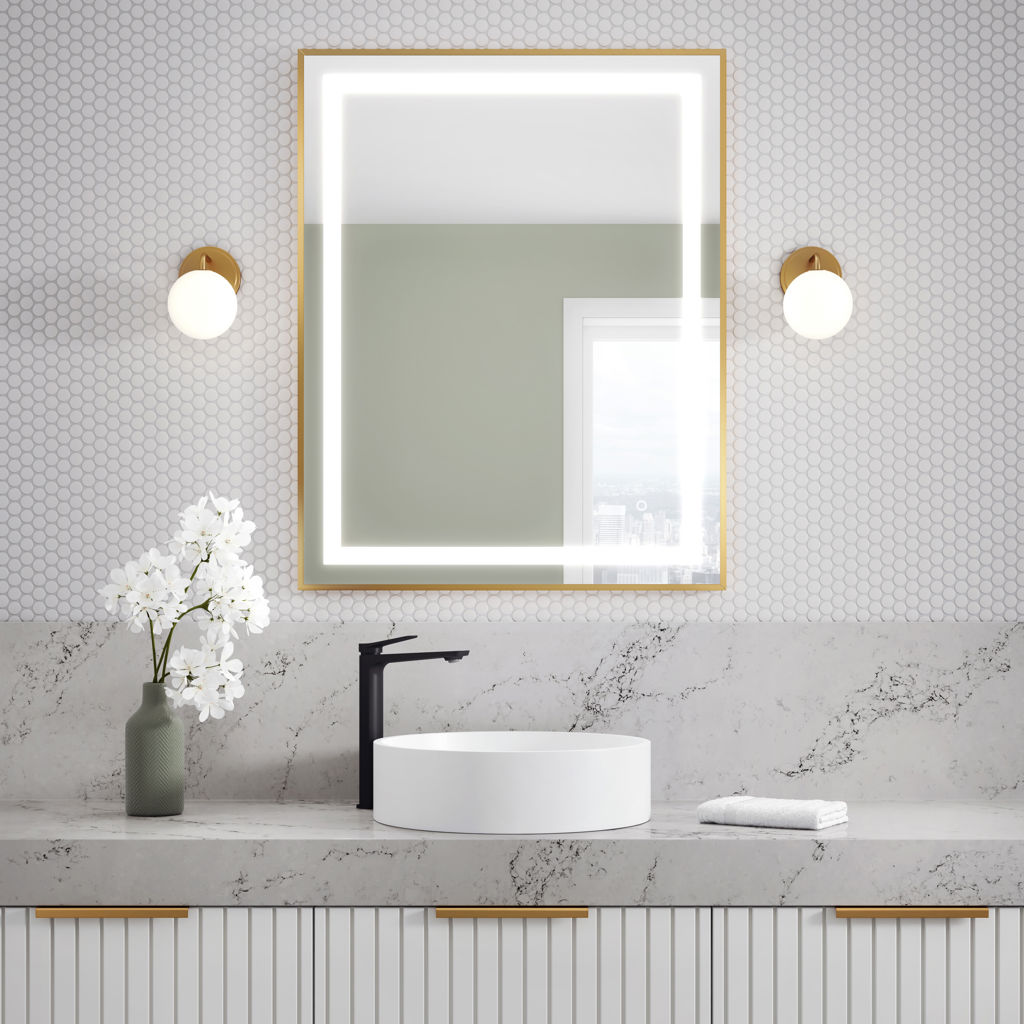 LED Illuminated Rectangular Mirror 30" X 38" Brushed Gold