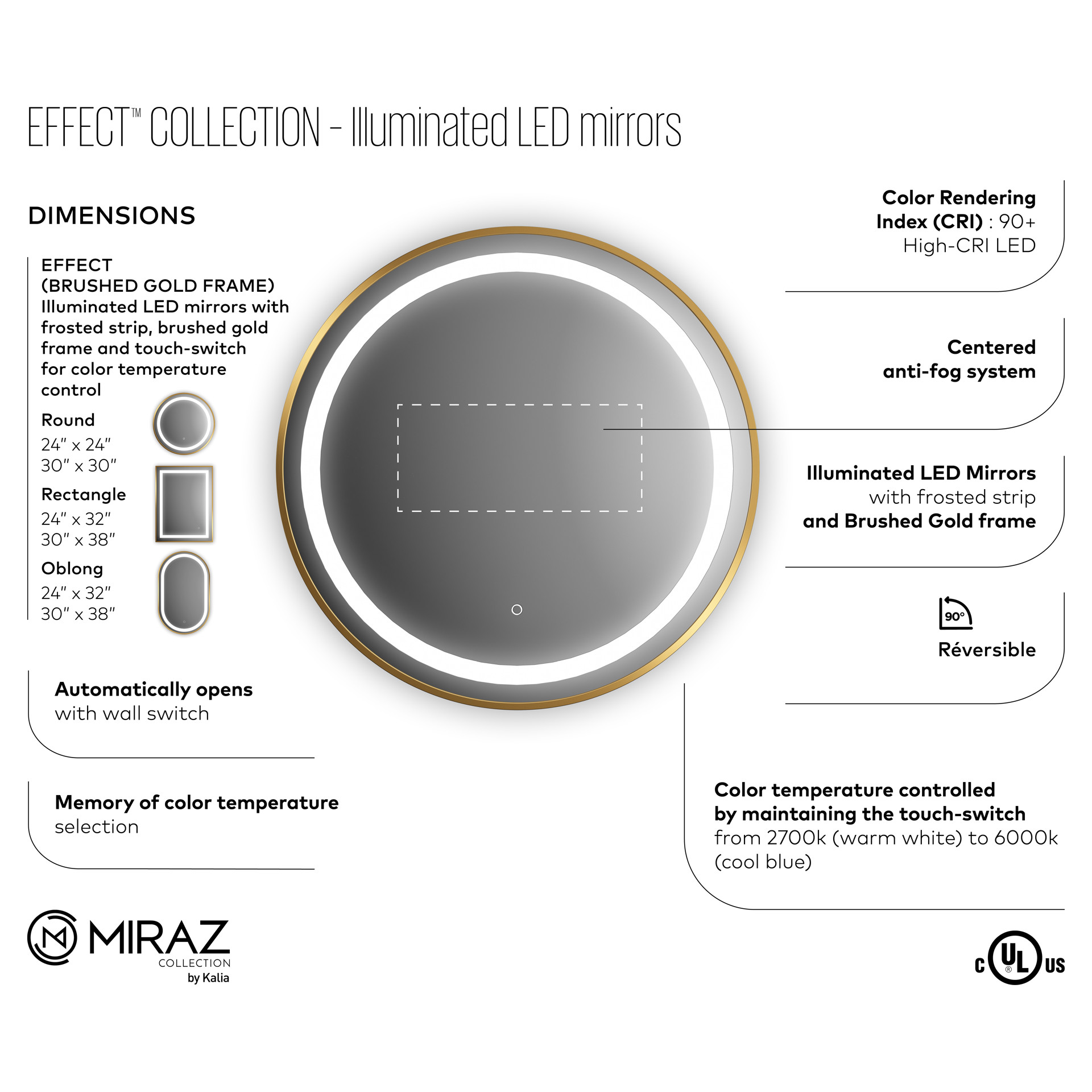 LED Illuminated Rectangular Mirror 30" X 38" Brushed Gold Kalia MR1784-570-180