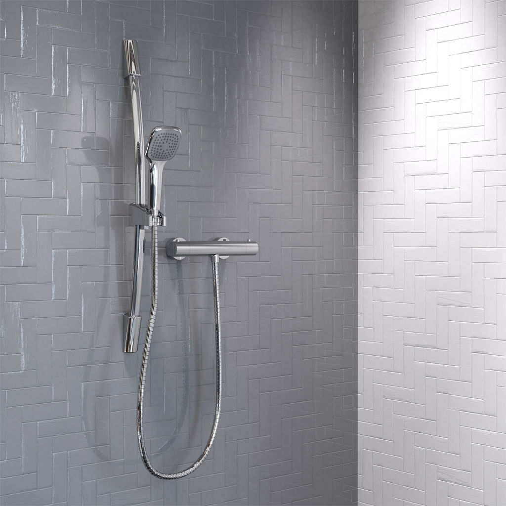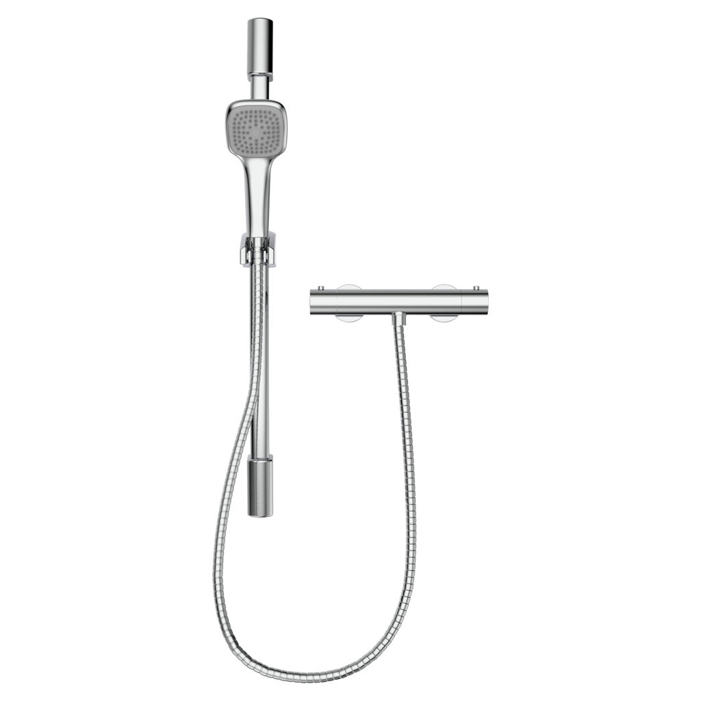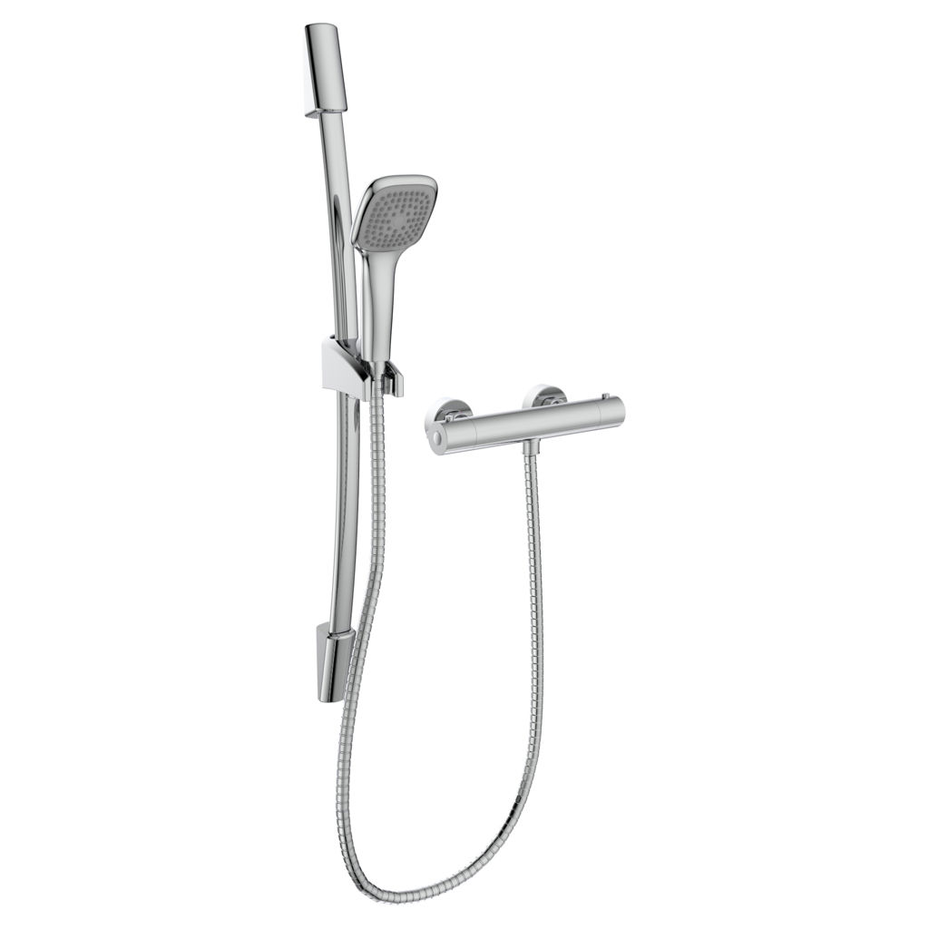 • Includes; thermostatic valve, controller handle kit and trim, sliding bar kit, hand shower kit and holder.